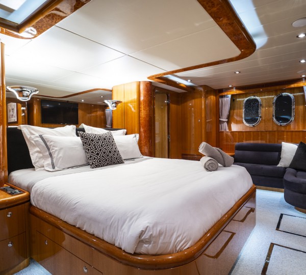 The master stateroom is on the bridge deck and comprised of the cabin area, private study with lounge, capacious ensuite and large walk in wardrobe. The upper deck has 6 king size cabins, each generously appointed. On her main deck are a further 7 guest cabins. 1 nanny/staff cabin is also available on the main deck forward.
