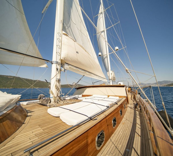S/Y XENIA’s auxiliary power is provided by 2 x Yanmar 75hp engines. She has a sloop rig and averages speeds of 8 knots under way.
