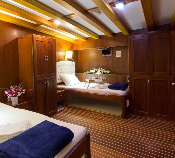 The yacht has ample interior and exterior living and can accommodate up to 8 charter guests, in 4 en-suite cabins.