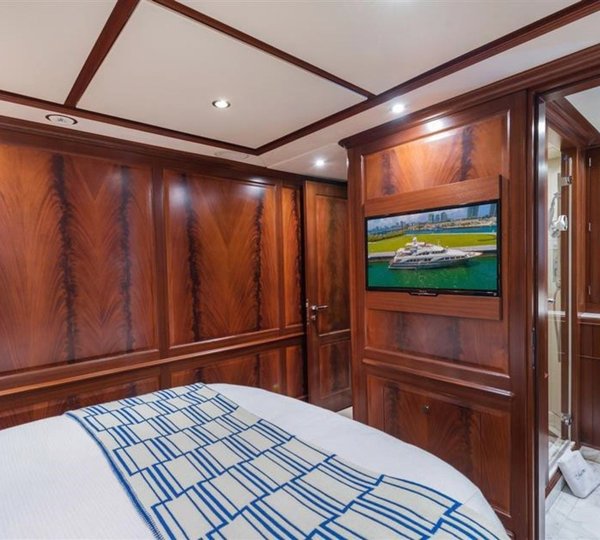 The accommodation sleeps up to eight guests over four cabins with room for 12 guests while cruising.