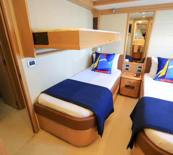 Forward on the lower deck is the spacious crew area including an open mess and galley and three ensuite bunk cabins.