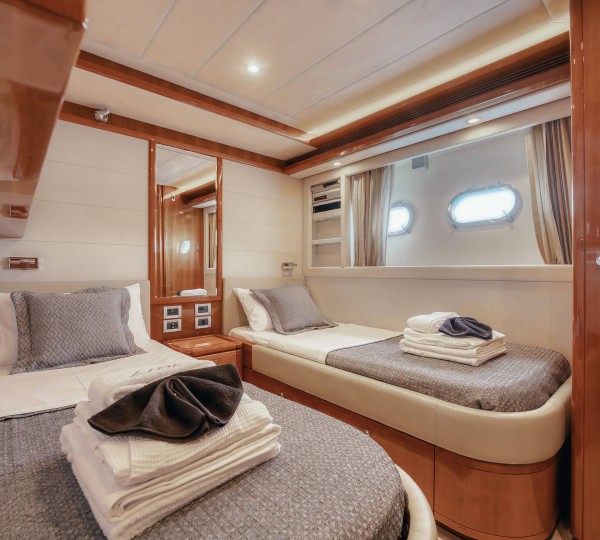 She can accommodate up to eight adults plus two children in four spacious and comfortable ensuite cabins. There are 11 crew members on board dedicated to offering first class service.