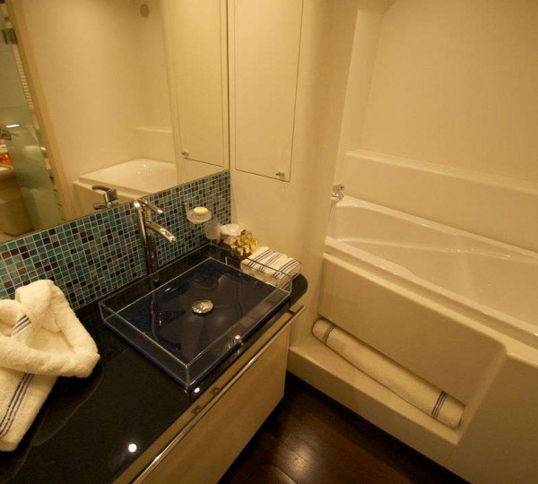 There are three guest ensuite guest cabins which echo the décor of the main deck areas. The master boasts a walk around bed, cosy seating area and deluxe ensuite with direct access onto the aft deck. The two additional double ...