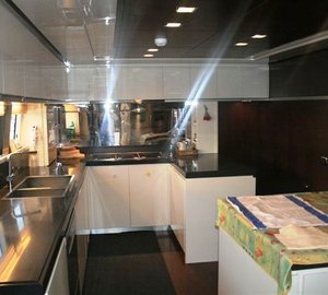 The galley and wet bar areas include modern conveniences such as dishwasher, ice maker, 3 fridges, 2 freezers, water maker, gas ...