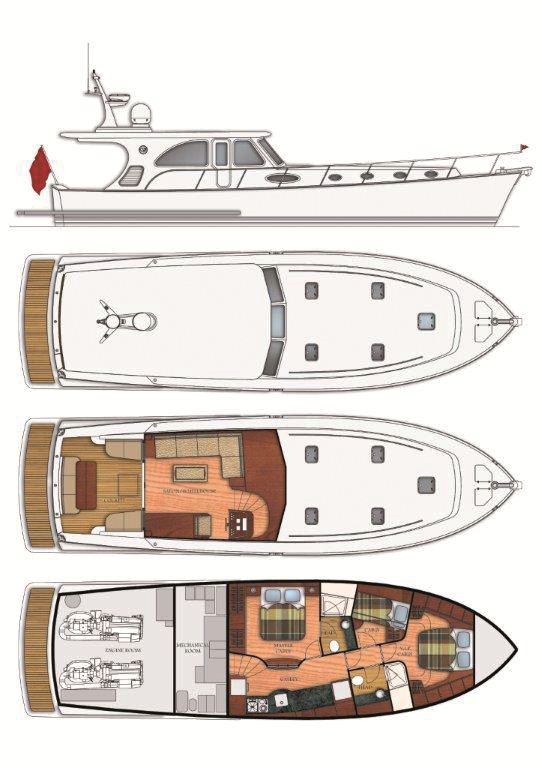 Layout of the NEW 61 Bahama Bay motor yacht by Vicem Yachts