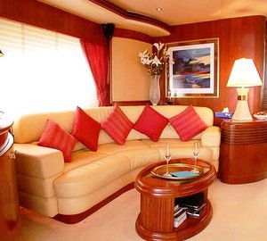 Luxury yacht TORTOLA offers lovely and comfortable accommodation to 8 guests across four well appointed staterooms that feature en-suite heads. There is a master stateroom and a VIP stateroom, both with a queen berth, in addition to two guest cabins. One of these has a double berth, while another one has two single side by side berths. Crew accommodation include 2 crew berths, head/shower and galley area.