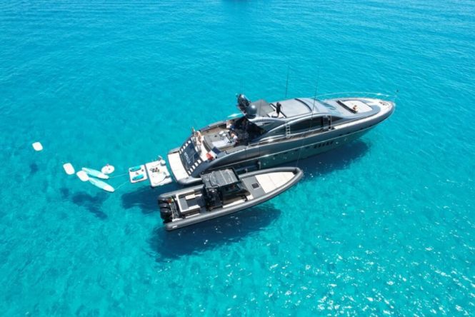 She can also be joined by a partner chase boat with additional toys which can be added to your charter package. If you choose not to take the chase boat you will still have a tender, jet ski, paddle boards, wakeboard and snorkelling equipment to keep you busy.
