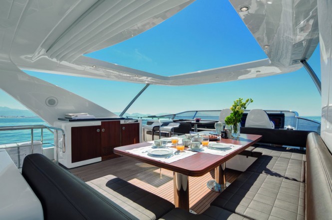 Azimut 83 superyacht 42 m² of flybridge in addition to innovative furniture and design solutions. Photo by Azimut Yachts