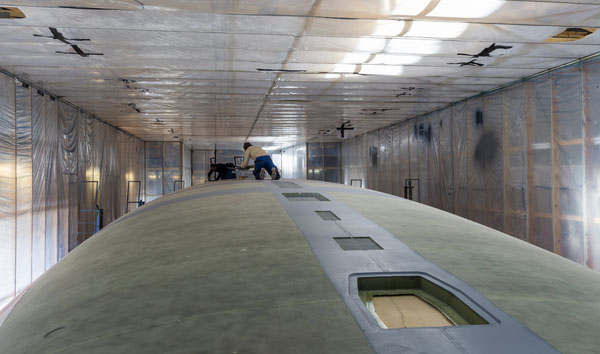 Work in progress on the hull of Swan 115-001, Nautor's new flagship and the biggest model of the current SwanLine. At Nautor's Swan Boatbuilding Technology Centre in Pietarsaari, Finland. Photo credit to Nautor’s Swan/Carlo Borlenghi