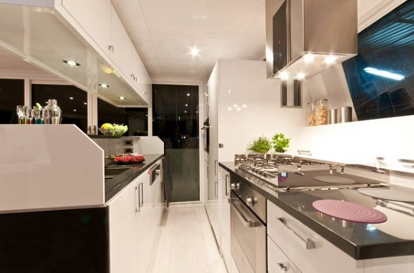 The total interior living space is 62 m2 (667 sq ft). The external cockpit is equipped with comfortable sofas, sunbathing mattresses, a dining table, armchairs, and storage compartments for water toys.The FREESTYLE’s exterior is impressive with its purple painted hulls that match the modern, minimalist interior design combining purple, black and light beige with high gloss white furniture (dining table, chart table) and carefully selected decorative details. Altogether the interior design evokes stylish modern simplicity and peaceful ambience.