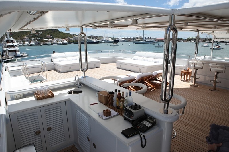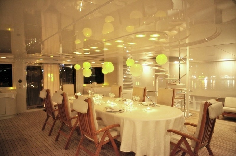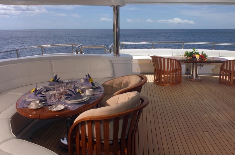 The yacht's general design work came from Codecasa. The formal naval architect intellectual property are the creation of Codecasa. Motor Yacht APOGEE received her elegant interior designing from the interior design company of Studio Dellarole. Italy is the country that decasa Yachts completed their new build motor yacht in. After official launch in 2003 in Viareggio she was thereafter released to the happy owner following sea trials. Her core hull was constructed with steel. The motor yacht main superstructure is fabricated for the most part from aluminium. With a beam of 11.2 m / 36.7 ft APOGEE has spacious size. A reasonably deep draught of 3.5m (11.5ft) limits the list of worldwide ports she can enter, depending on their minimum characteristics.
