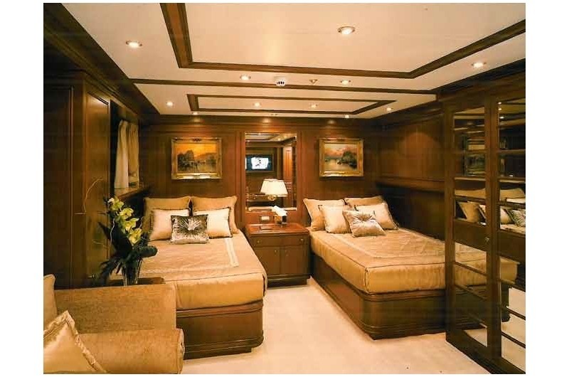 The vessel is powered by twin large CATERPILLAR diesel engine(s) and can find a swift maximum limit speed underway of approximately 17 knots. The main engine of the APOGEE creates 2260 horse power (or 1663 kilowatts). Her total HP is 4520 HP and her total Kilowatts are 3326. She is driven by twin screw propellers. As for the yacht’s stabalisers she was built with Vosper. Concerning bow thrusters she uses Schottel. Her industrious cruising speed is 14 knots which offers a range of 6000.