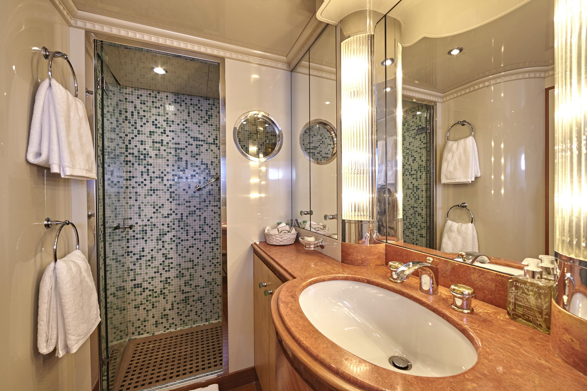 Powered by 2 x Deutz 620 V-12, 2285hp engines, the CRN motor yacht she cruises at 13 knots and can reach top speeds of 16 knots.