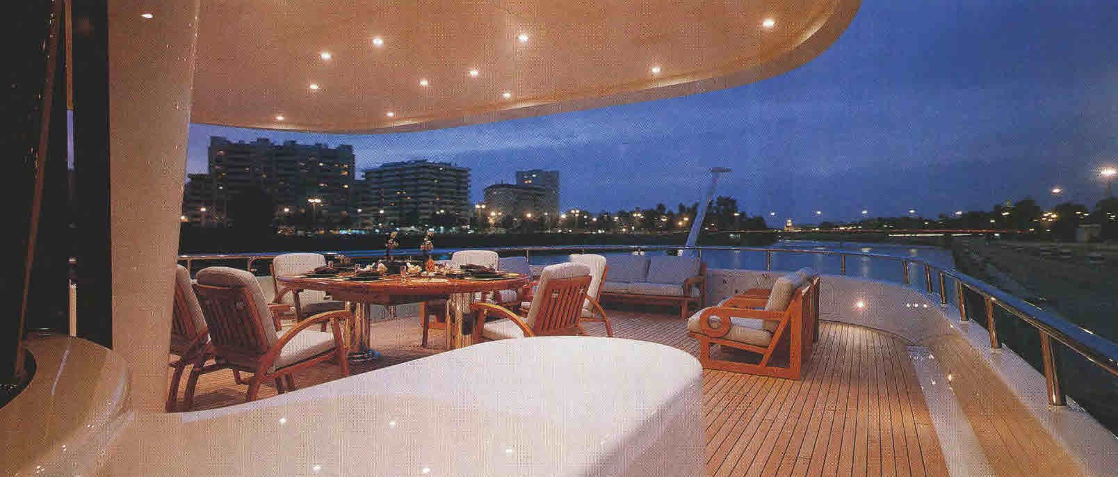 In Sept 2009 KISSES cruised Palma, in Spain. This motor yacht also traveled the area near Illes Balears during October 2009. Heinen & Hopman is the type of air con onboard. This motor yacht has a teak deck.