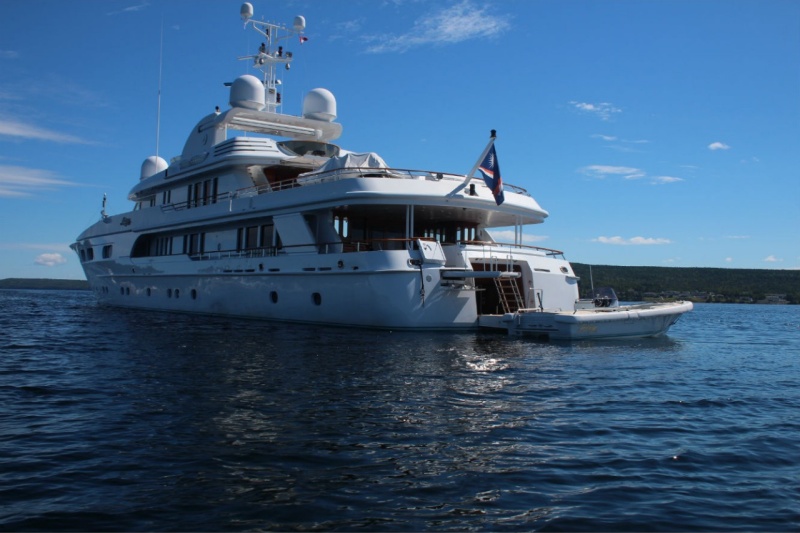 Tenders & Toys: 23' (7m) Custom tender with 260 Volvo inboard driving duo prop, 18' (5.4m) RIB “Ribeye” with 115 Yamaha outboard, 13' (4m) SOLAS Rescue RIB, (2) Yamaha Wave runners, Fishing equipment, Snorkeling equipment, Water skis and tow toys, Inflatable toys, (4) sets of dive gear, tanks, BC’s and regulators, Exercise equipment, including rowing machine, cycle machine, and free weights, Audio Visual Equipment and Deck Facilities: Video distribution with DVD players in each cabin, iPod players in each cabin, Communications: Wi-Fi throughout.