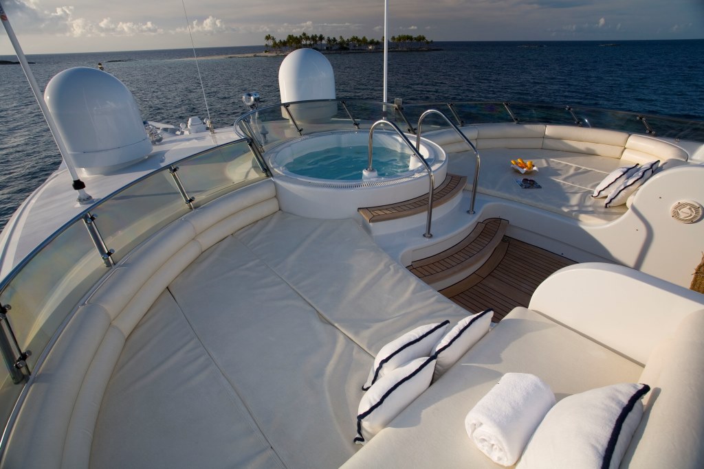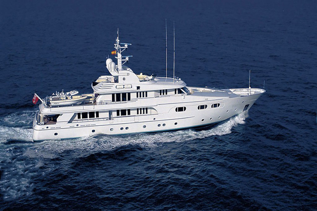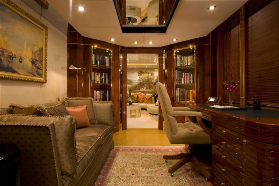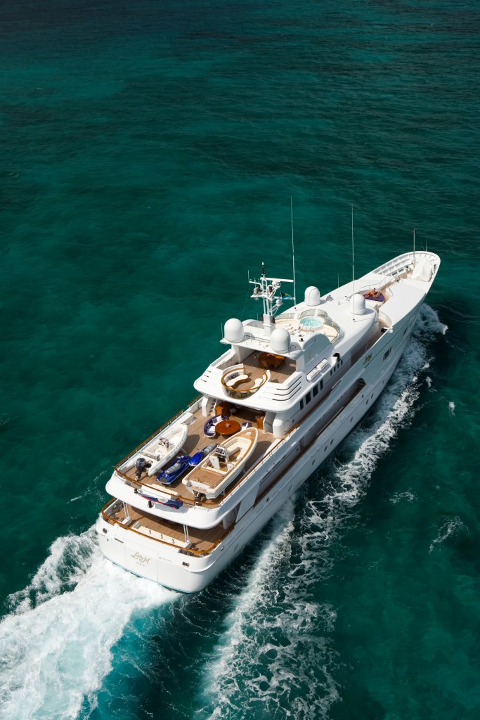 NOTABLE FEATURES: ~ Outstanding design by Donald Starkey ~ Flexible accommodation layout ~ Crew of 15 ~ Generous master cabin with Jacuzzi, study & lounge ~ Gym ~ Sundeck with massive sunpads, Jacuzzi and alfresco dining area ~ Water skis, towables & other great water toys