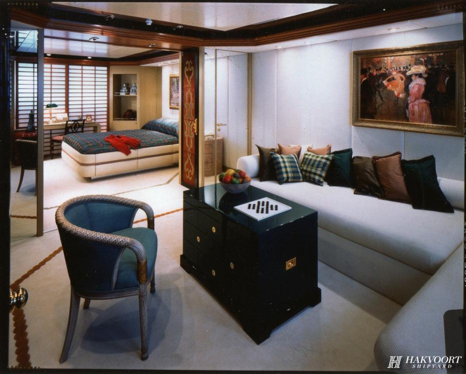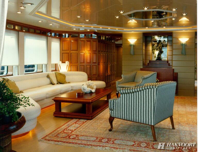LADY M II was delivered 1994 out of the renowned Hakvoort yard in Holland. Since then, she has been kept in superb condition. The exceptionally stylish interior was created in cooperation with designer Donald Starkey and is an exquisite blending of colors, textures. Lady M II (then known as LADY MARINA) was the worthy winner of the 1994 Showboats Award for the best motor yacht interior.