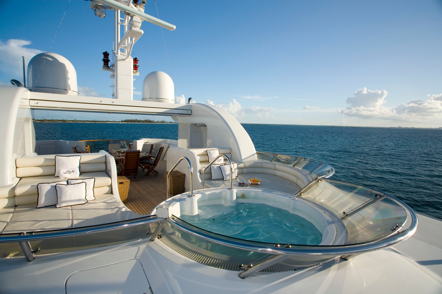 LADY M II (ex Lady M)is very functional offering unique features including a boat deck lounge with a summer house feel; a superb sun deck with sun pads, dining area, BBQ and Spa Pool.