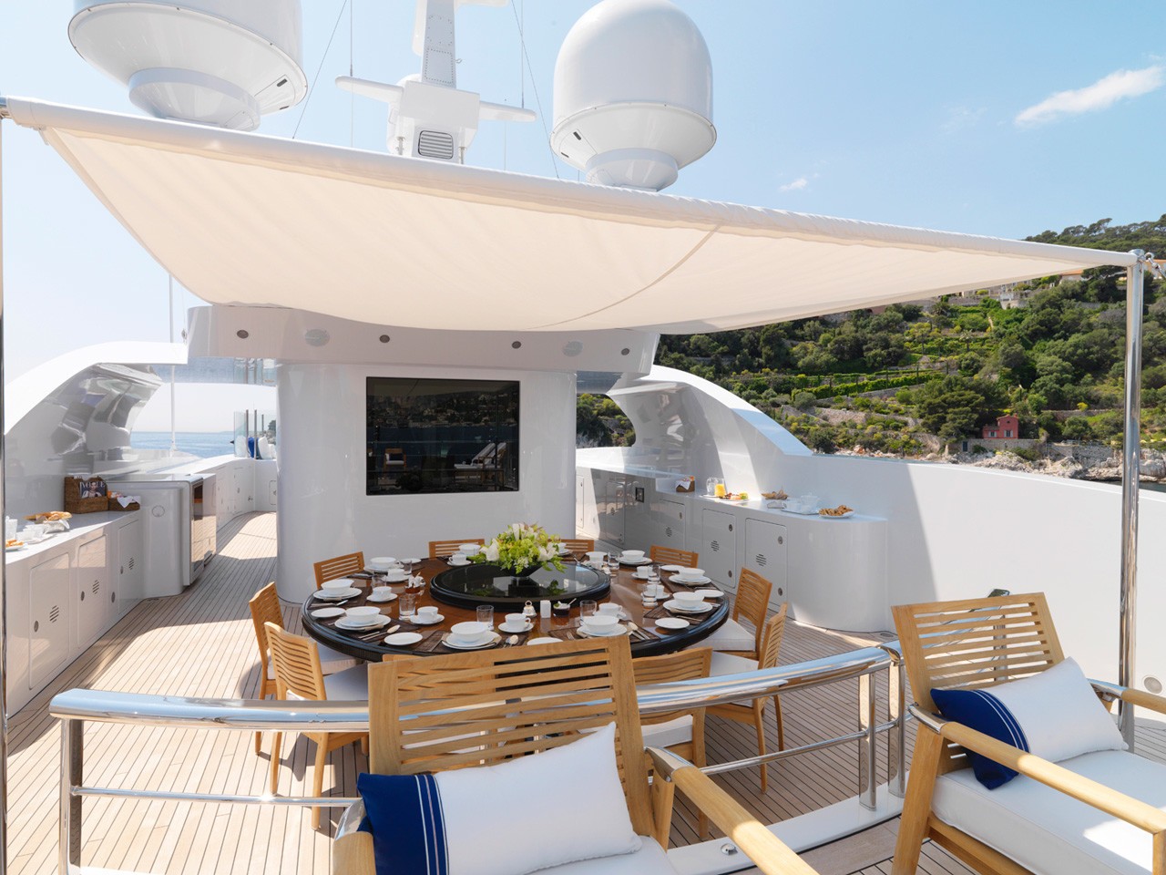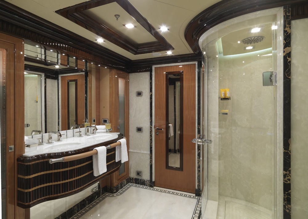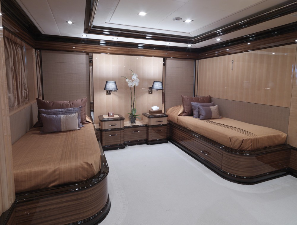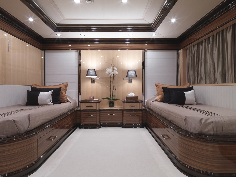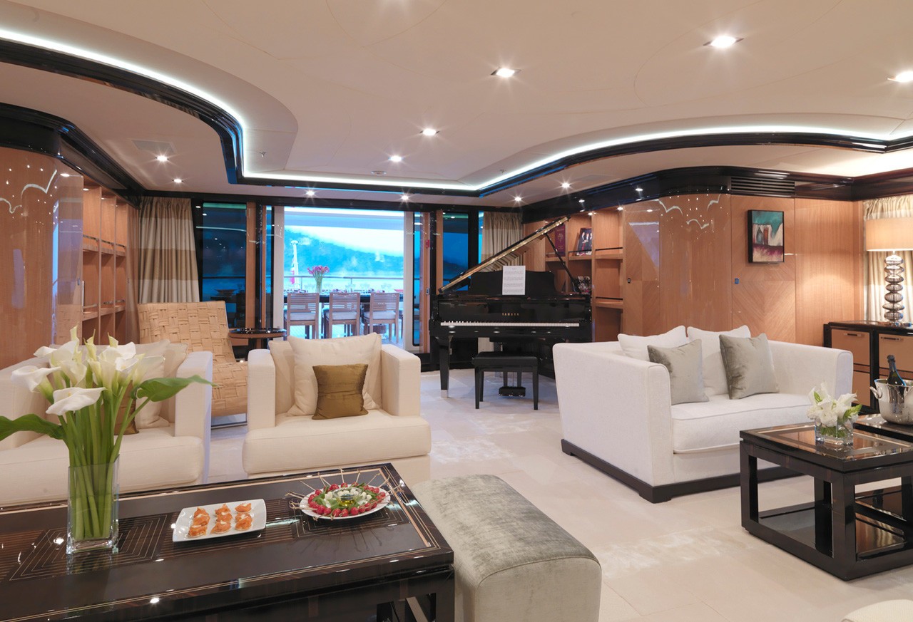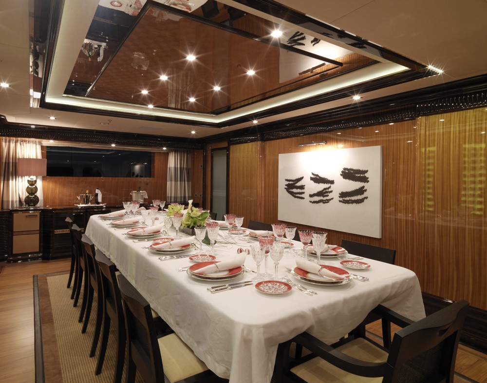 MEAMINA can accommodate 12 guests in 4 double and 2 twin staterooms and has a crew of 15. Some of the unique and special features on board MEAMINA include a an elevator, Zero speed stabilisers, Gymnasium, Spa Pool and a grand piano