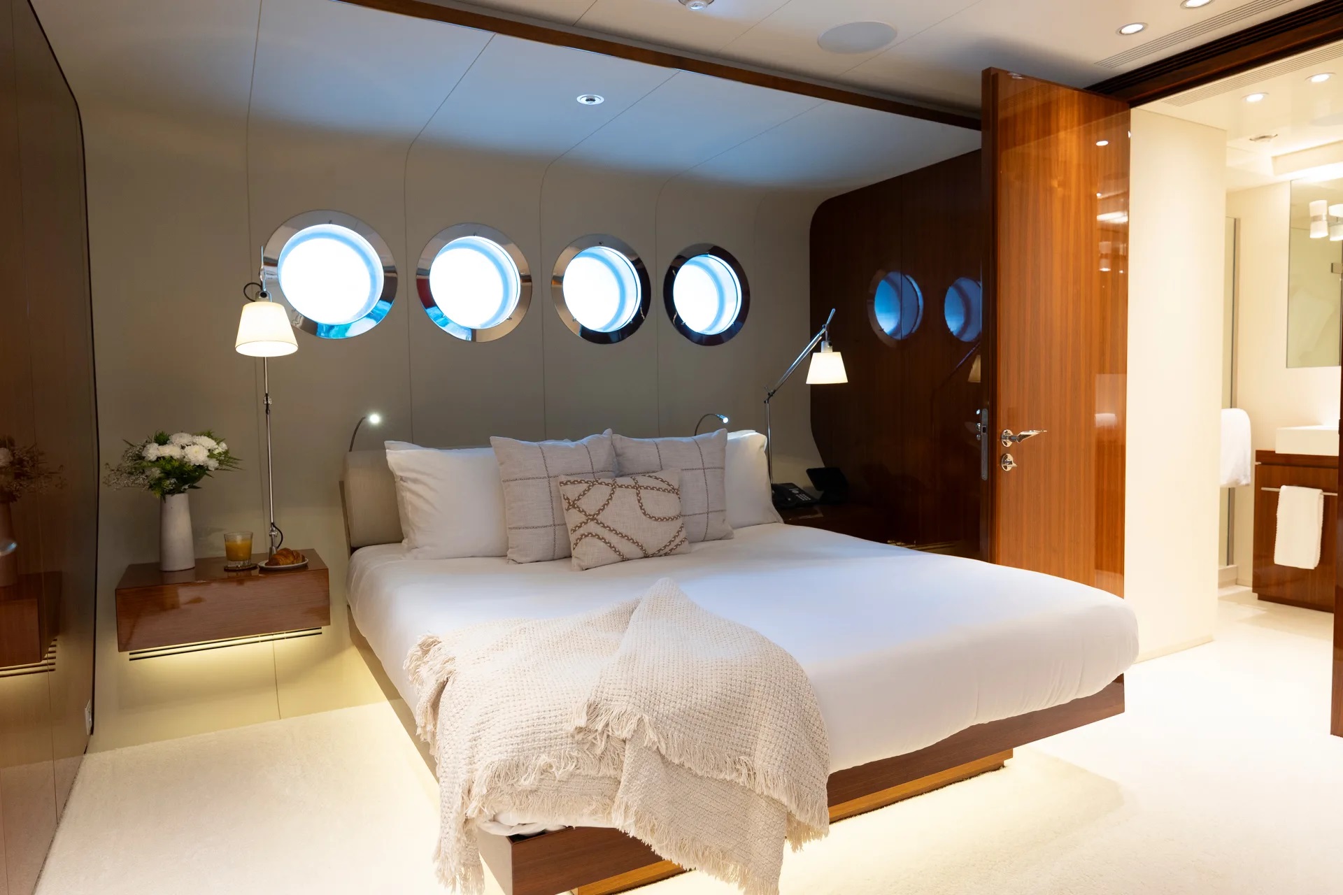 Superyacht DRAGONFLY (ex Silver Zwei, Fangio) has cabins for up to 18 people and a crew of 16.