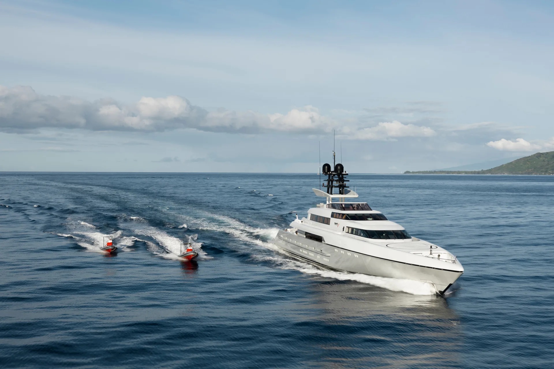 The extremely agile lightweight, aluminium Superyacht DRAGONFLY can attain a top speed of 27 knots. With her very low fuel consumption of around 400 litres/h averaging 18-19 knots, she can cover over 4,500 nautical miles.