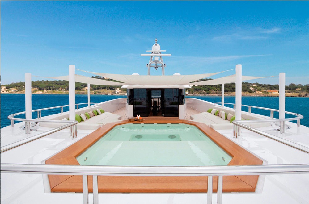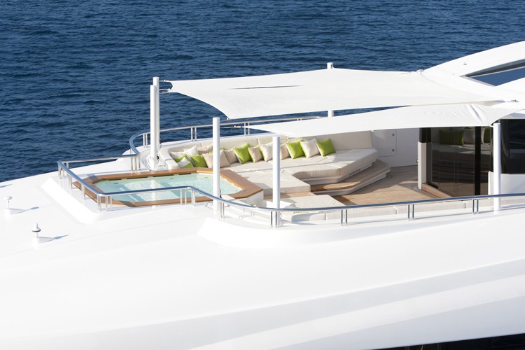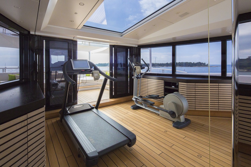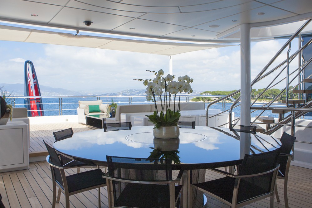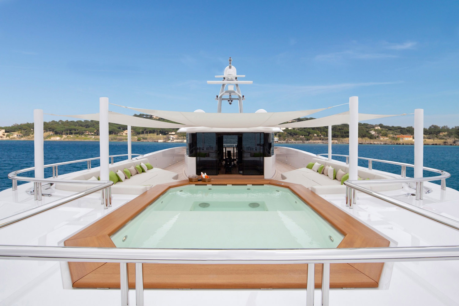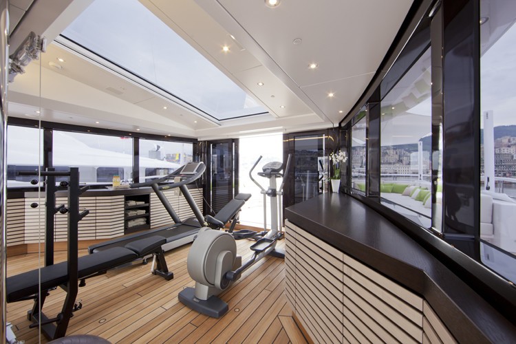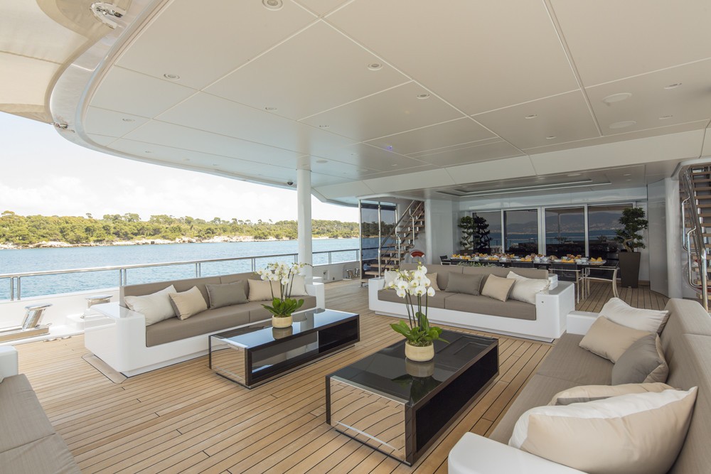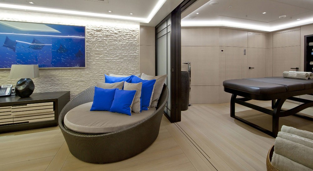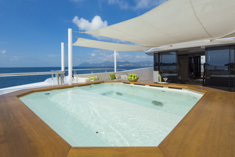 The beach club boasts massage room, sauna and steam room, beauty salon and lounge. Sunbathing, swimming and relaxation are the key activities when it comes to luxury lifestyle aboard MOGAMBO. The large pool is partially shaded with a sunbathing/seating area located on the main deck aft. The exterior living spaces also offer great alfresco dining table, plush seating, and sun loungers. The sundeck is ideal for worshiping the sun and having some quiet time.