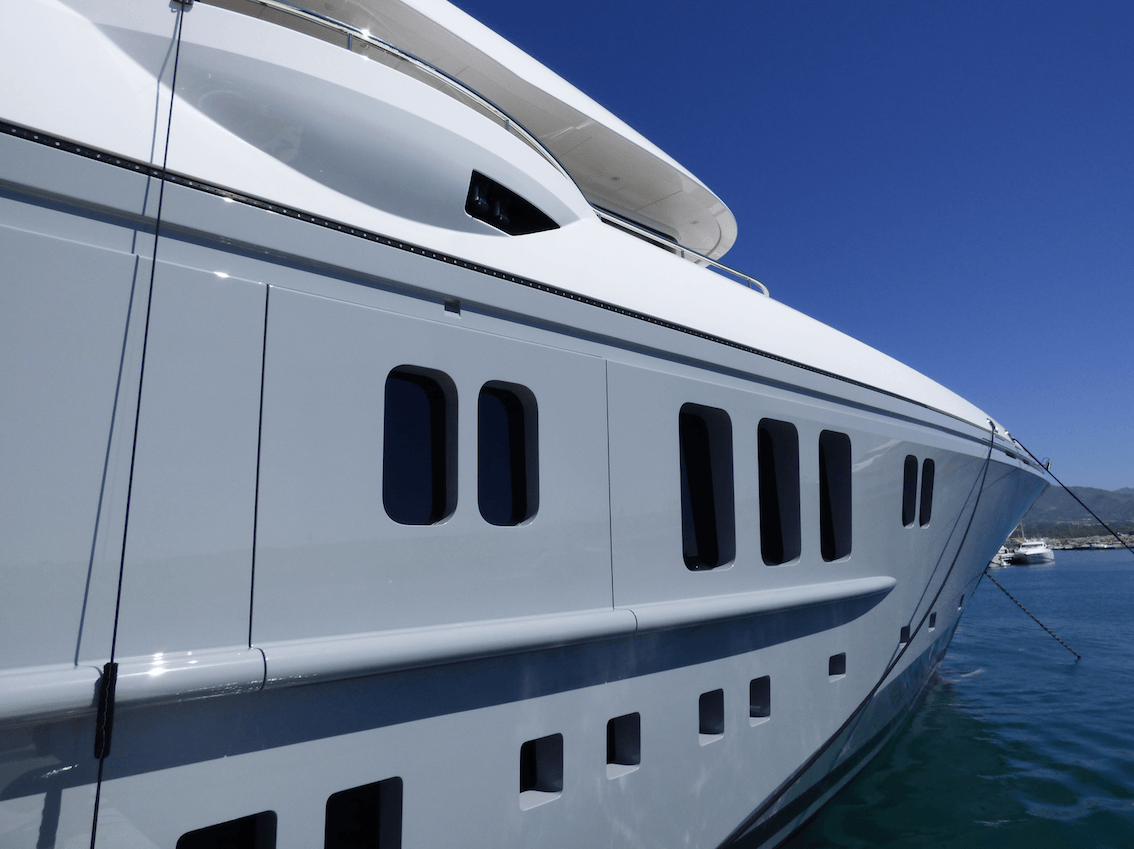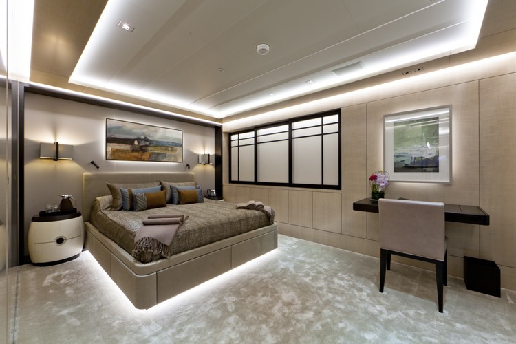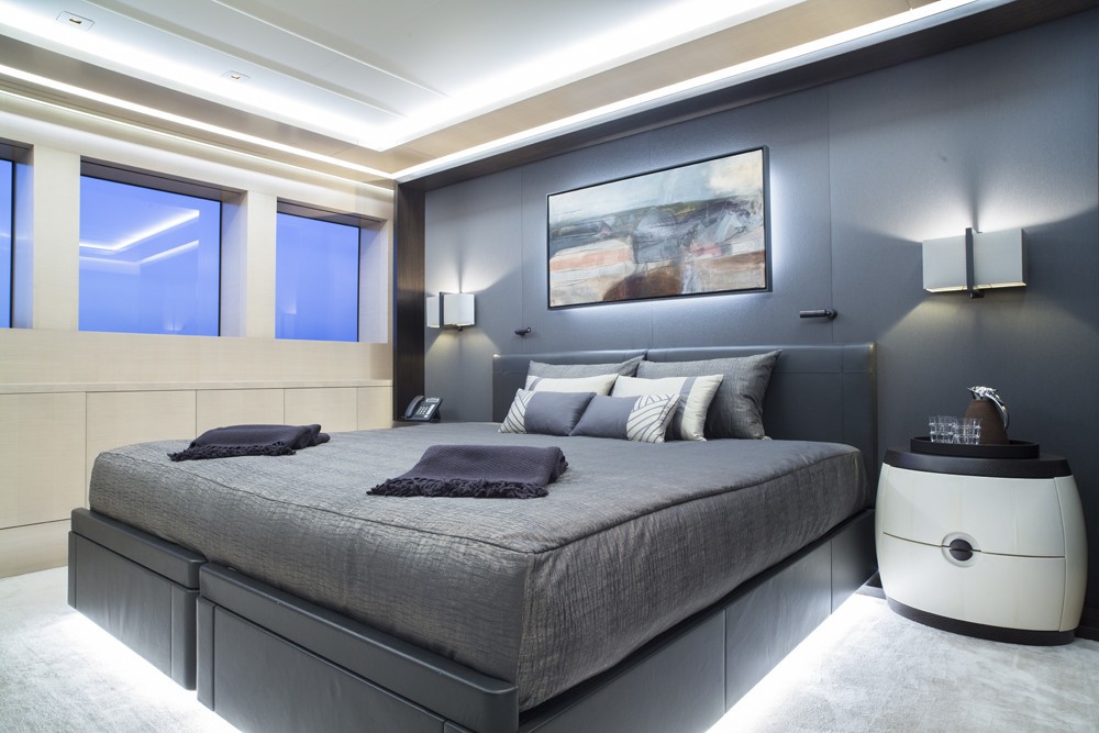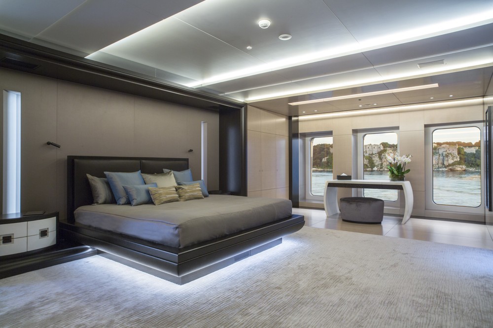 The grey paint, well-balanced deck and sleek lines create a truly elegant look. She was designed for global cruising and luxurious indoor and outdoor living. As for the interior design, it benefits from large windows and an abundance of natural light.
