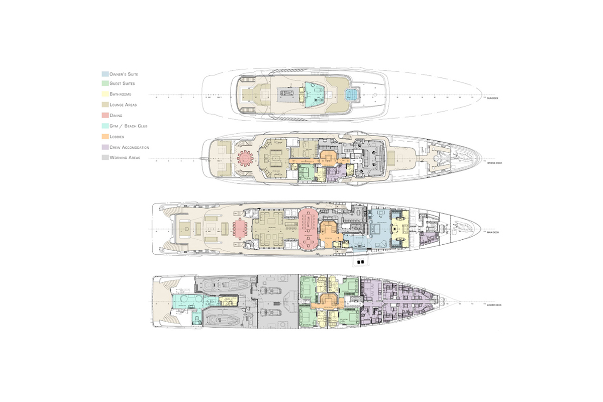 NOTABLE FEATURES: Tender garage ~ Beach club with Spa ~ Jacuzzi ~ Gym ~ Several dining area ~ Massive outdoor living spaces Elevator ~ Tender garage ~ Swim platform ~ Received "Recreational Area for Guest Use" Award at the Showboats Design Awards 2013