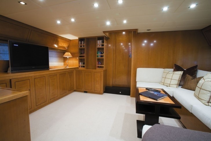 Tenders & Toys: Jet Tender Williams Turbojet 3m25 - 750 cc - 4 adults +1 driver 1 set of Waterskis for women and 1 set for men. 1 wakeboard 2 towable inflatable donuts Snorkeling equipment for adults and children 1 jetski SEADOO GTI WAKE 155hp 2 small seabobs which children can use too. A small selection of children's DVDs, drawing and coloring, board games. Separate saloon with large TV, entertainment system and seating. Twin cabins - starboard midship, with ensuite shower room, sky TV. All cabins equipped with USB connectors The main deck saloon is full beam, large window scan that is an ideal breakfast or cocktail area. At night it can be transformed into a formal dining area with 2 long tables. Retractable roof to create an open-air experience. Long cream sofas, teak decking and wooden paneling. One metre length flat screen TV, iPod docking station and fridge bar. Aft deck and bow features lounging pads, music system. Audio Visual Equipment and Deck Facilities: Main salon: Flat screen TV, Satellite, DVD player, Bose sound system. Below deck -Cabins: Large flat screen TV, Satellite, DVD and Bose sound system. Wi-Fi- 4G internet All cabins fully cabins equipped with USB connectors