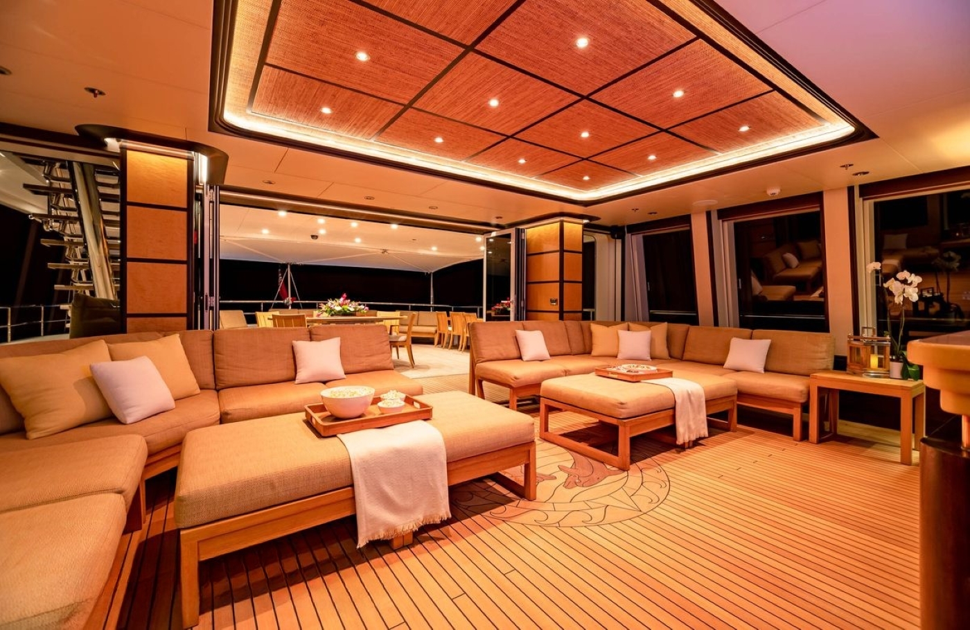 The main areas of the yacht such as the Main Salon, Bridge Deck Lounge, Sundeck and Lazarette are designed for multipurpose use, perfect for relaxing or entertaining.