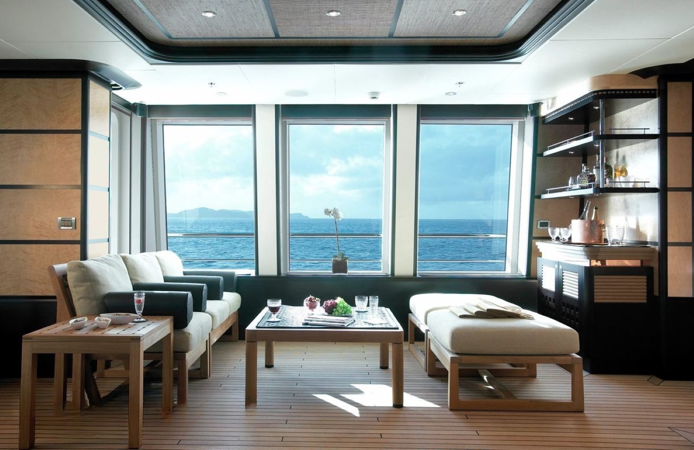 Superyacht HARLE’s interior by Sinot Design Associates is refined and stylish featuring the finest of materials and detailing such as bird's eye maple veneers, dark mahogany, fine leathers and exquisite marble.