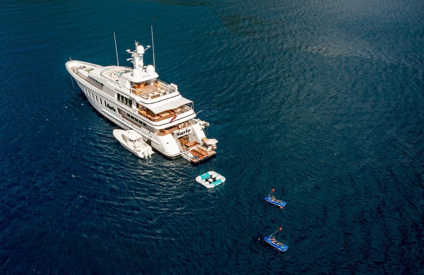 M/Y HARLE is a volumous yacht and is also equipped with Zero-speed stabilizers providing the ultimate comfort at anchor. She also has a fantastic array of water sports to enjoy while chartering in the warm waters of the Caribbean or the Mediterranean.