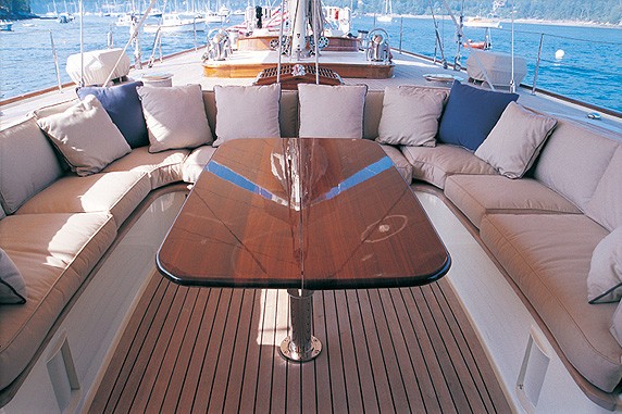Sailing yacht REBECCA was the largest ketch to be built at Pendennis at her launch and is one of the finest looking, modern sailing yachts in the world today. Her owner wanted to combine all of the finest elements of yachts from the mid-19th century to the modern day, in a stylish, eye-catching yacht offering high performance under sail. German Frers accordingly produced an extremely attractive and performance-minded plan for a 42-metre yacht. Her interior by Robin Black is light and elegant, featuring of off-white fielded panelling. A unique feature of the yacht is the sole is made from antique Heart Pine salvaged from a North American mill built in 1711.