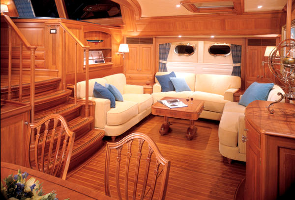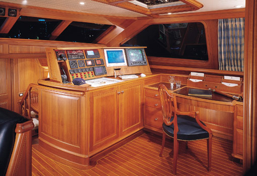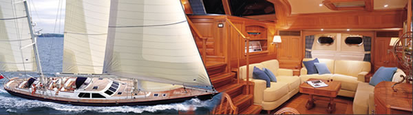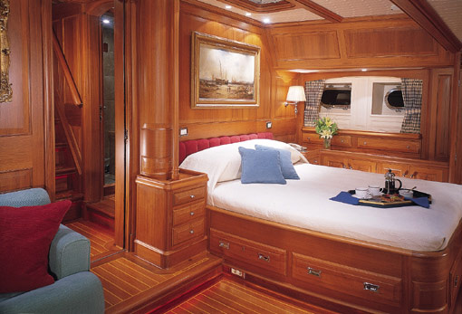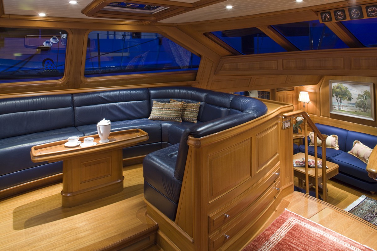 Beautifully appointed throughout, the yacht has benefited from the experience of a very knowledgeable owner. Unusual but extremely practical design features such as the fold-down stairway from the aft deck to the bathing platform and also the most unusual master stateroom, with companionway to its own private cockpit, help to make sailing on Blue Too one of life’s ultimate experiences.