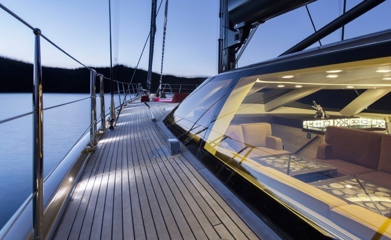 With launch in 2014, the 37.5m (123´) sailing yacht Escapade (FY17) is a spectacular fast cruising sloop, built by the prominent NZ shipyard, Fitzroy Yachts. Designed by renowned Dubois Naval Architects, the Project Escapade superyacht features lovely interior by Design Unlimited.