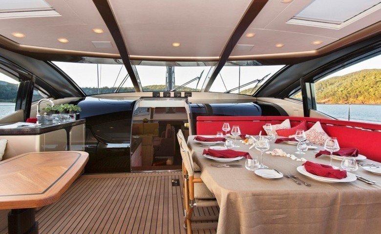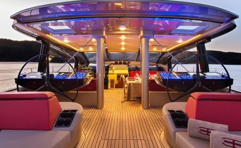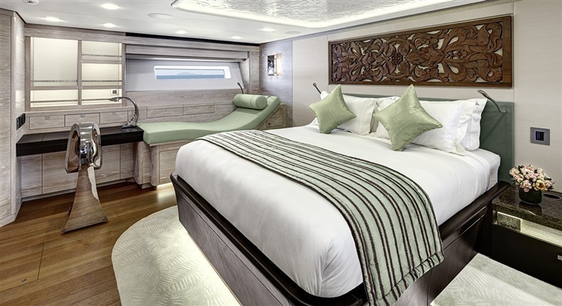 Four beautiful and comfortable cabins can be found on board the 37.5m luxury yacht Escapade. These comprise a master cabin as well as two guest staterooms situated aft, while a 4th cabin, come day room, galley and crew space are located forward. Escapade also offers a stunning raised saloon and a fixed bimini over the cockpit with mechanically operated sliding windows.