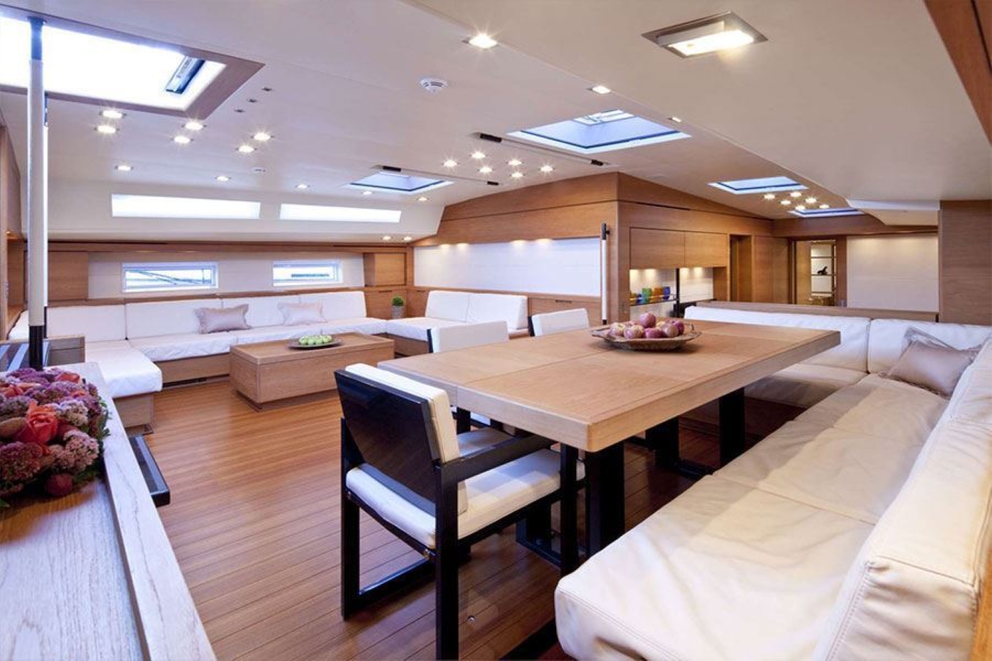 She features clean lines as well as provides warm and welcoming spaces in which to experience the open waters. The sleek interior boasts a traditional, open layout as seen before in other smaller sailing yachts coming out of the Southern Wind shipyard. The crew’s quarters, as well as both twin guest cabins and the galley, are all located in the stern area of the boat while mid-ship you will find the saloon with a dining area as well as a VIP cabin and the owner’s cabin. The owner’s cabin features a private study, a bathroom, and also a roomy walk-in wardrobe.