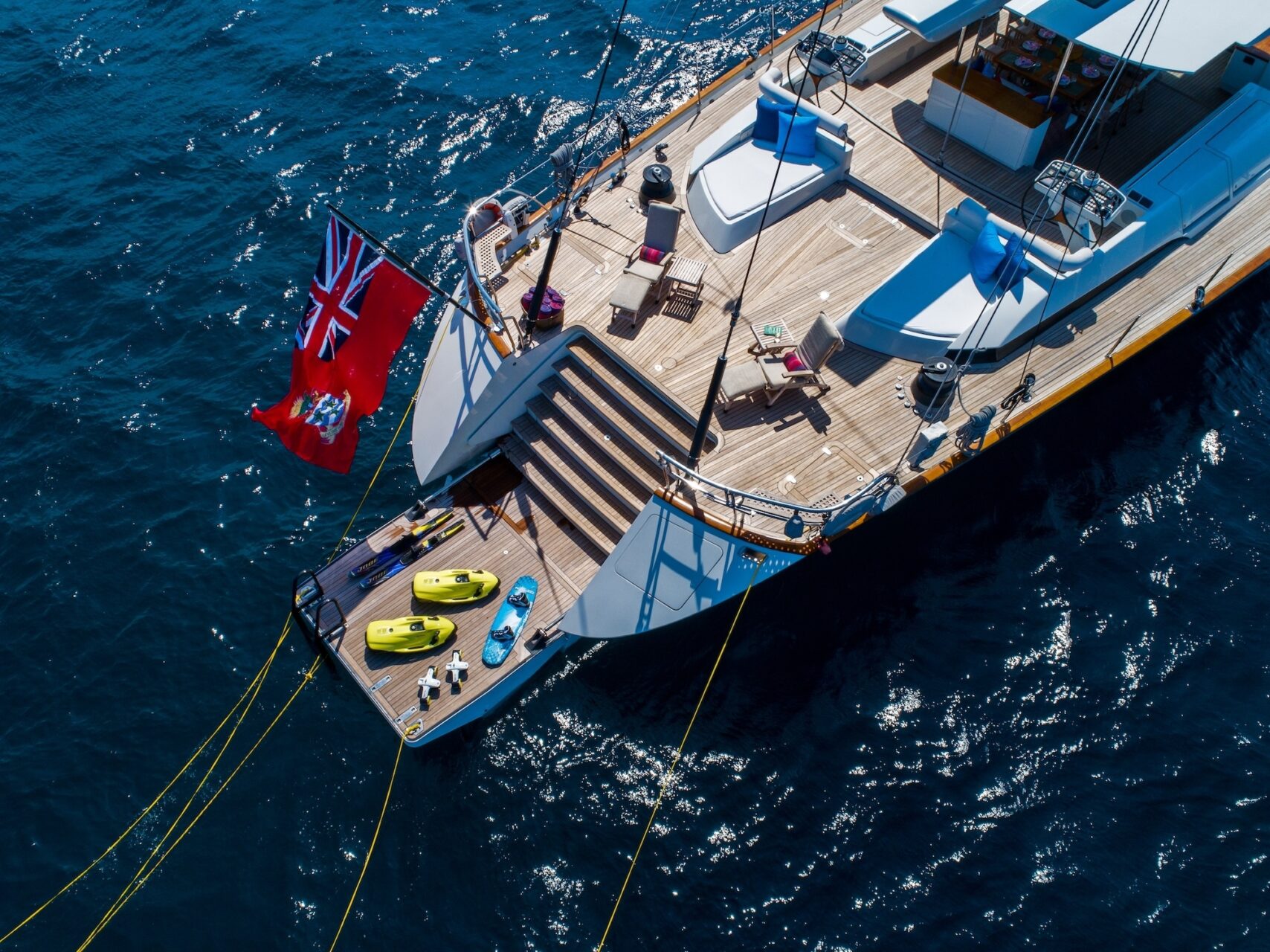 Tenders & Toys: Guest tender - Smuggler, 6 meter. Inboard diesel. Seats 8 people. / 2 x inflatable paddle boards, 2 x Yamaha sea wings, Inflatable towing biscuit, Wake board, Water skis, 2 x Seabobs