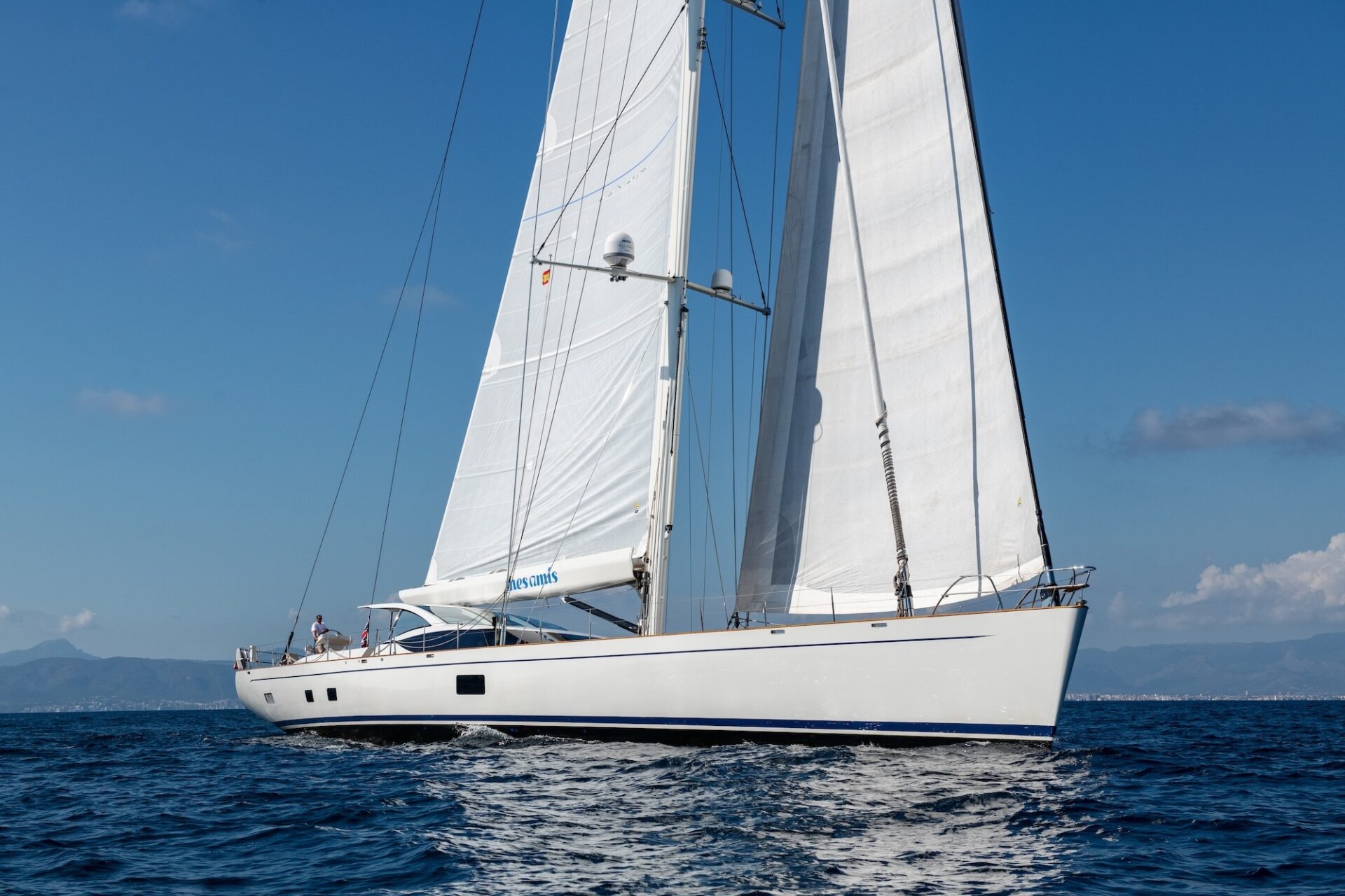 The luxury sailing yacht MES AMIS (ex ARTEMIS, SALPERTON III) is a 44m Dubois design, with interior design by Adam Lay Studios. This beautiful yacht was conceived by a very experienced yachtsman, built in New Zealand by Fitzroy Yachts and launched in 2007. She was the winner of the ShowBoats International award at Monaco in 2007. Refitted in 2022.