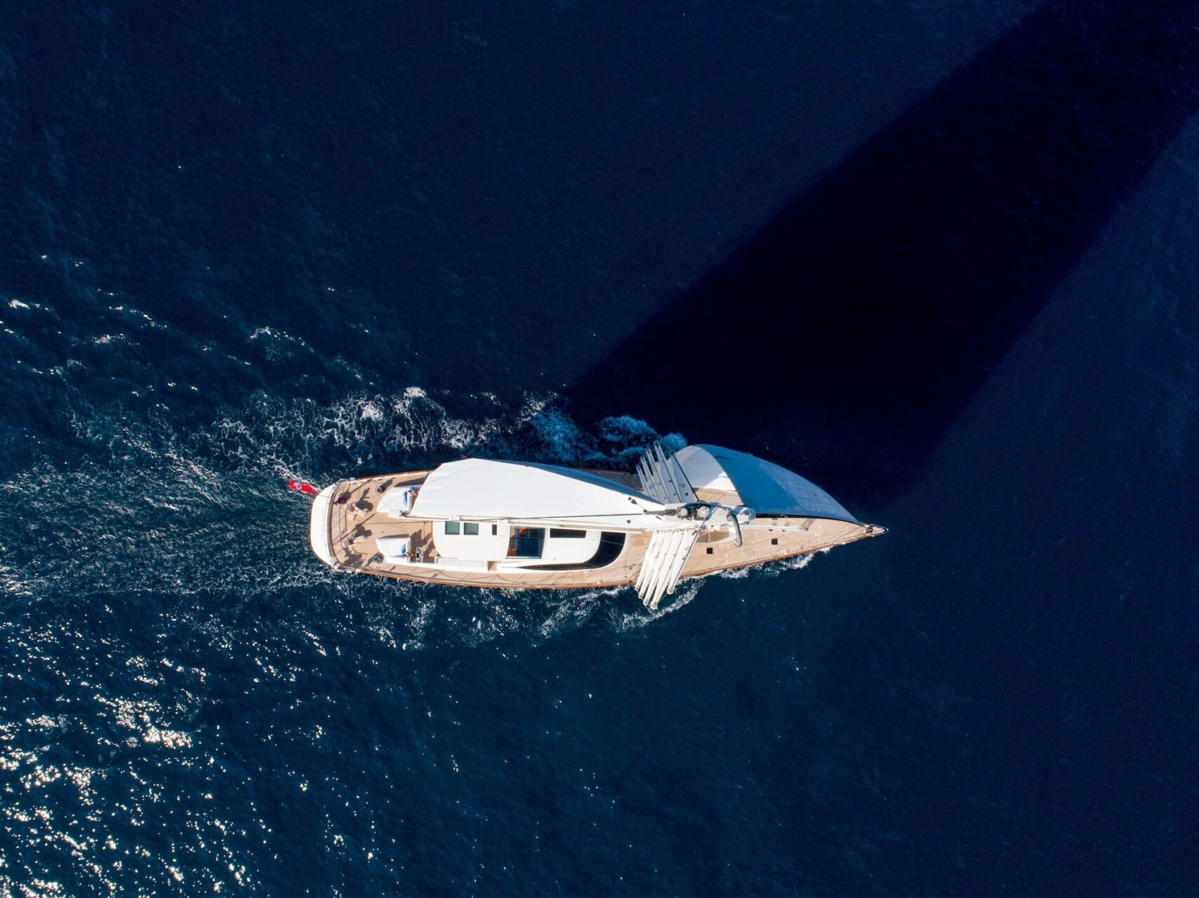 The yacht’s five spreaders Martin Spars 60m main mast and Leisure furl booms are constructed from carbon fibre. Her mainsail and mizzen are fully battened with the Leisure furl in-boom furling and reefing systems. Her hull, deck and superstructure are welded aluminium construction and her fin bulb keel is an elliptical section and is filled with 60 tonnes of lead. There are 5 watertight bulkheads.