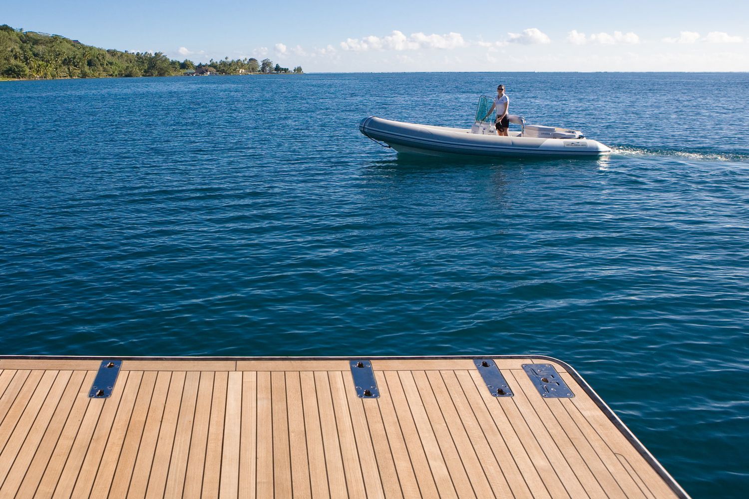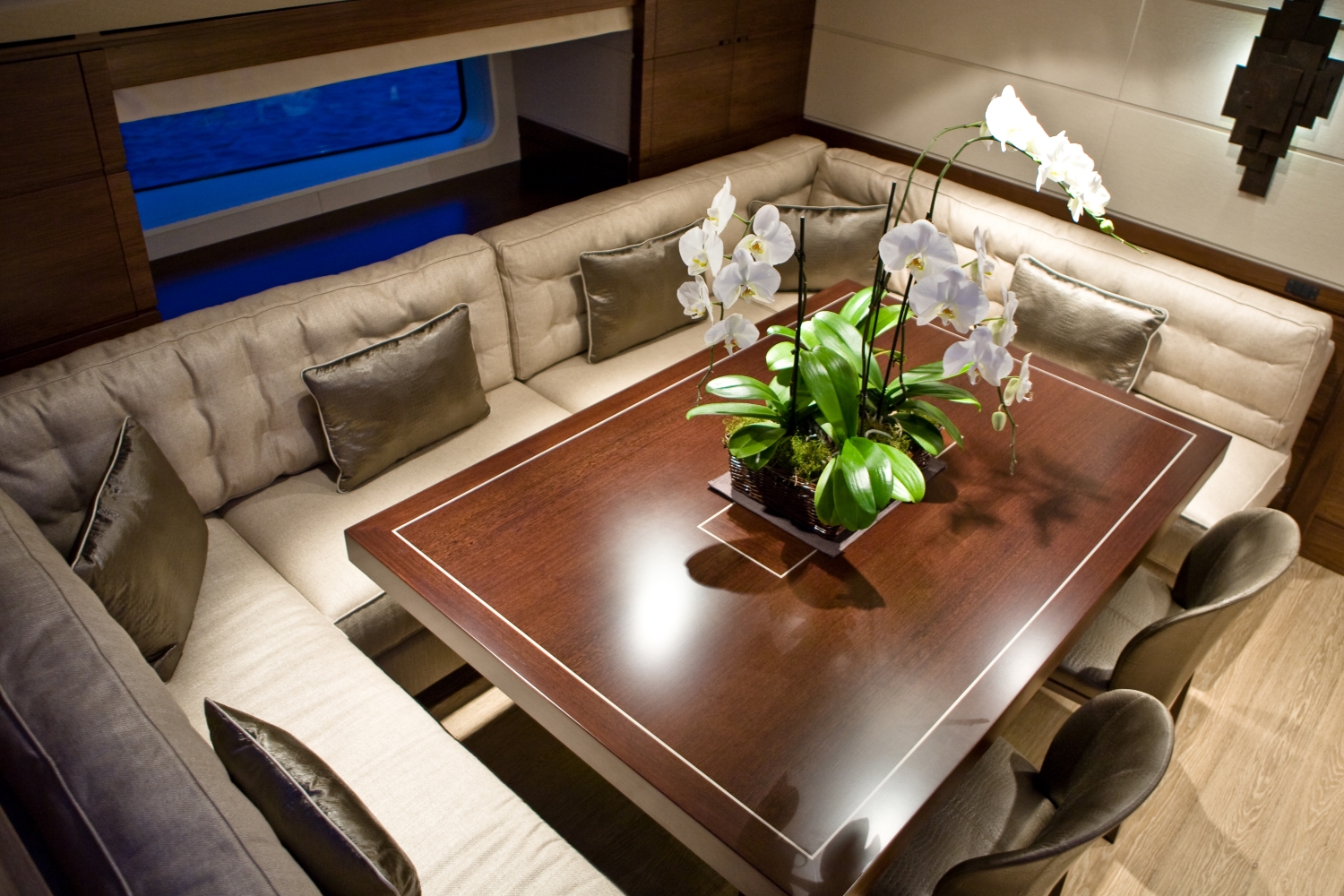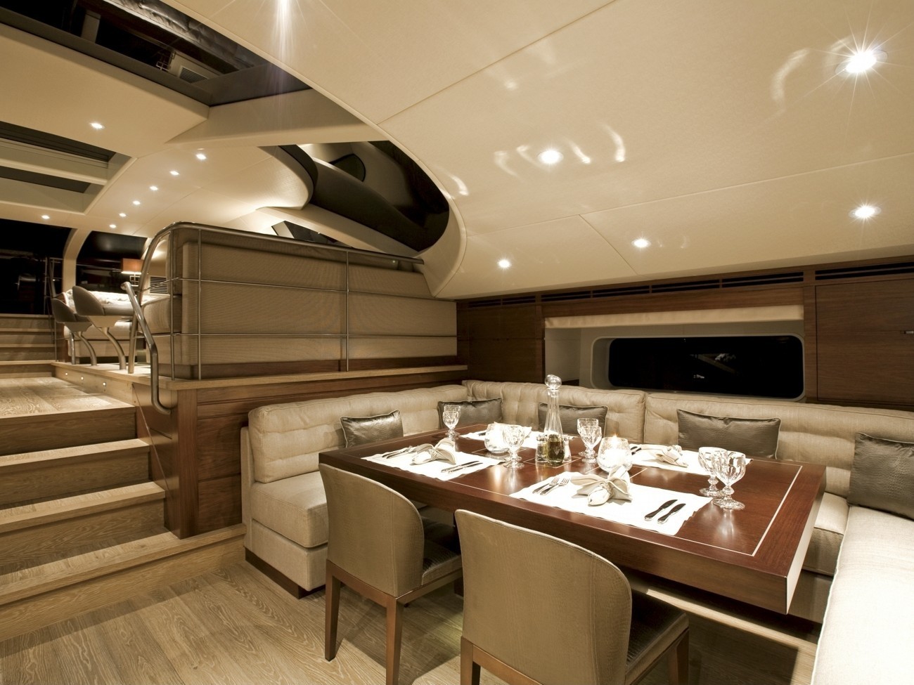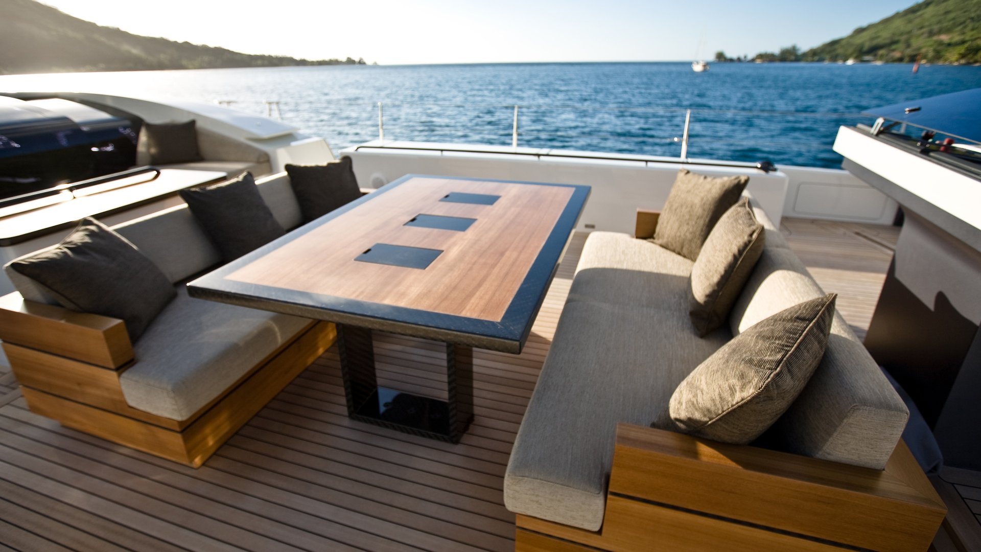 GITANA is able to accommodate 7 guests in 4 cabins. She has a full-width master stateroom featuring a large en-suite shower room and a very spacious VIP guest cabin with en-suite shower room. She has a further guest cabin offering a single, a small double and a Pullman which is an ideal configuration for children. There is also a twin cabin with twin beds and a pullman that doubles as a gym. Some of the gym equipment remains in this cabin.