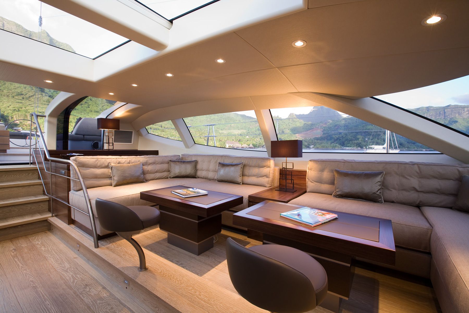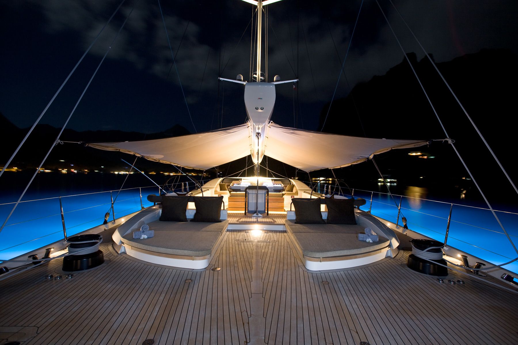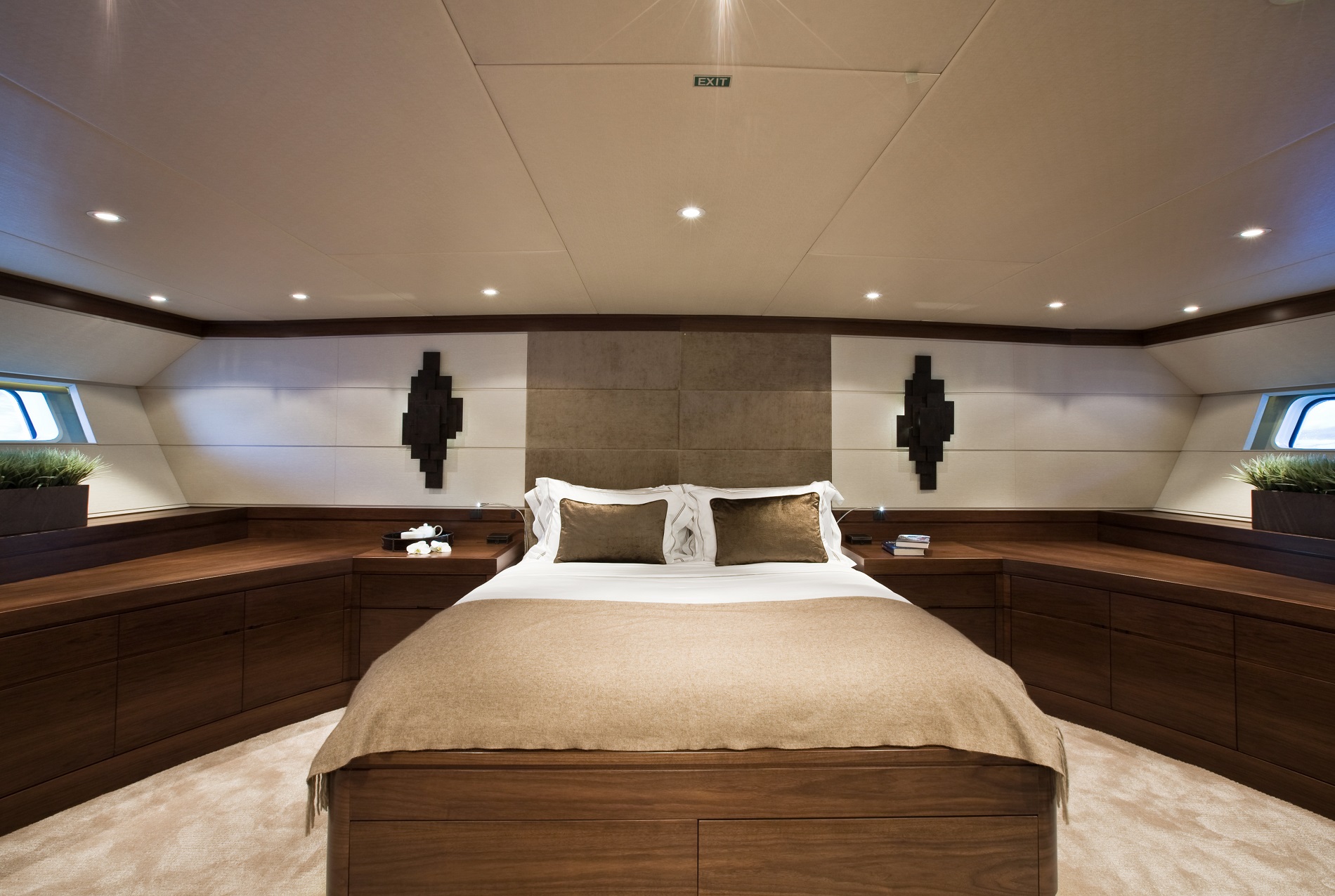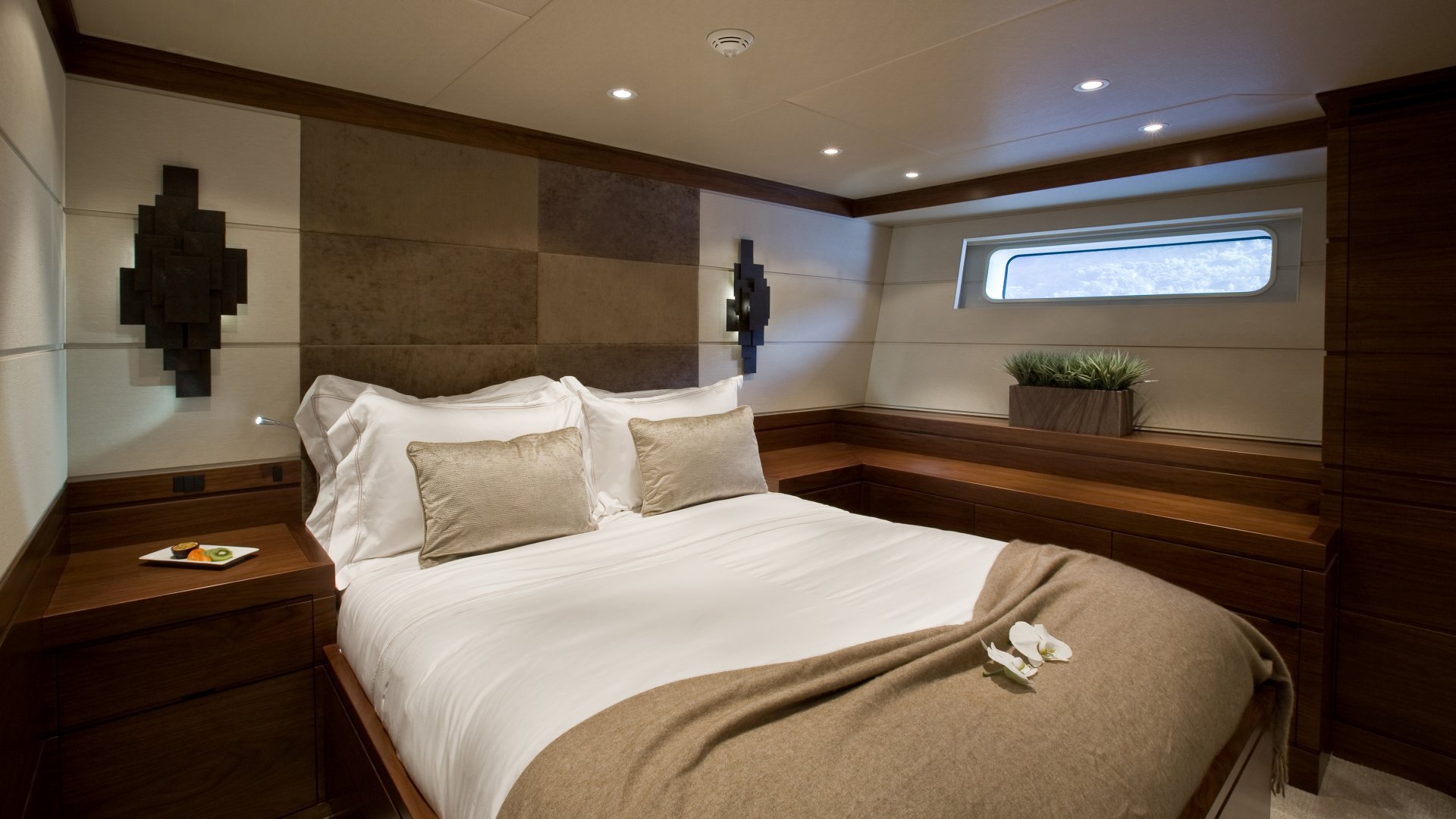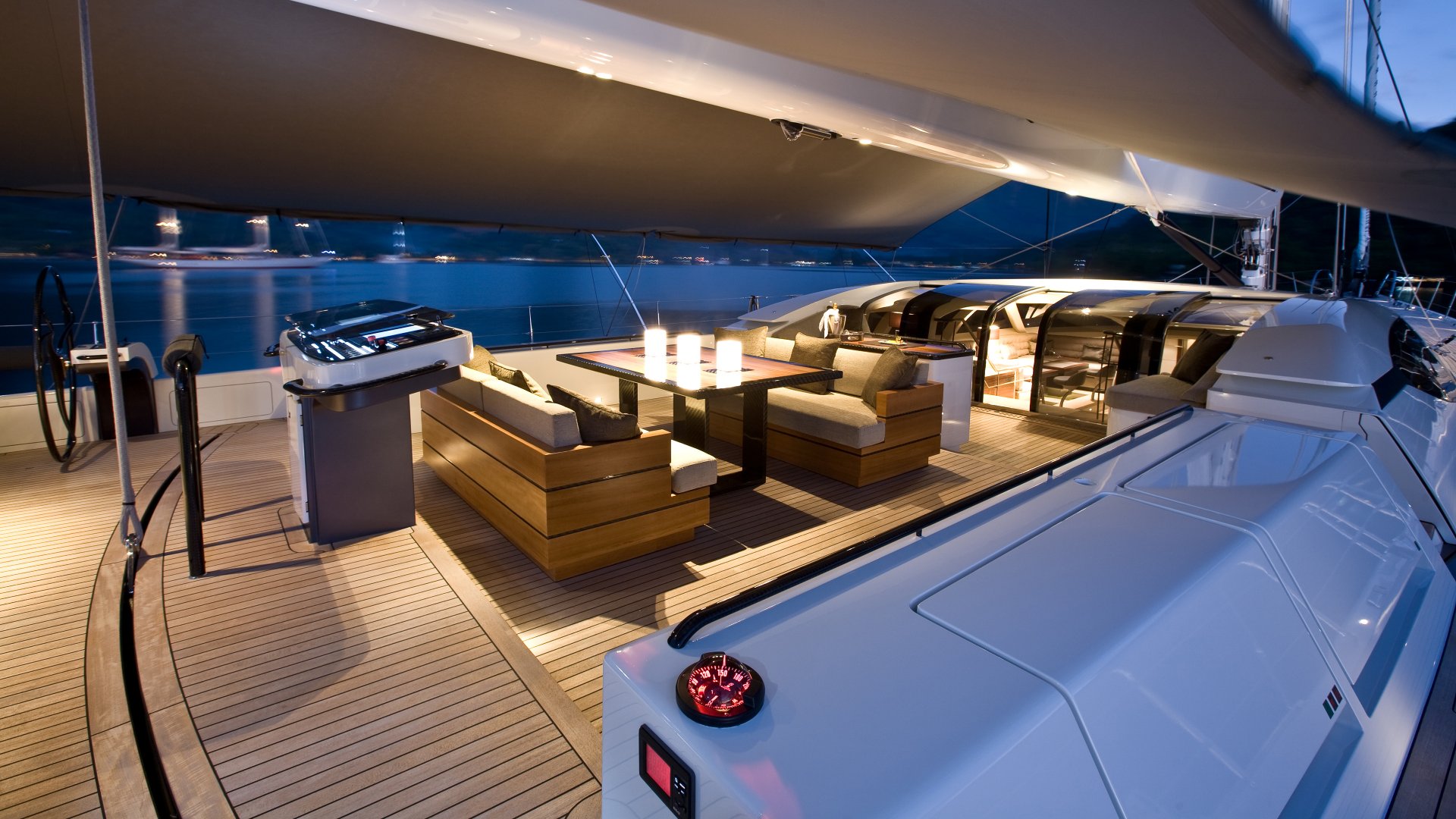 GITANA received two Best Sailing Yacht awards. Through experience and detailed refinements, she has been built for even better sailing performance as well as sleek aesthetics. The yacht boasts carefully crafted negative detail on the attractive walnut cabinetry that is a feature throughout. Other impressive details include custom treatment on imported door latches and light switches. She features a clean, contemporary atmosphere and high functionality throughout the yacht.