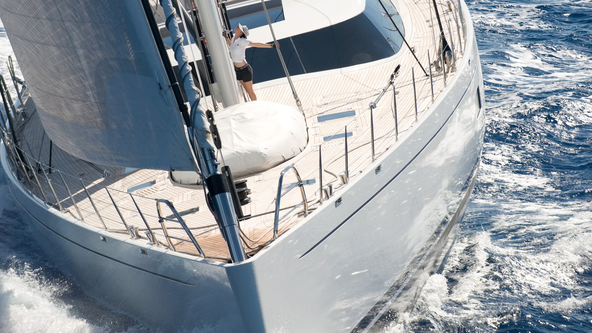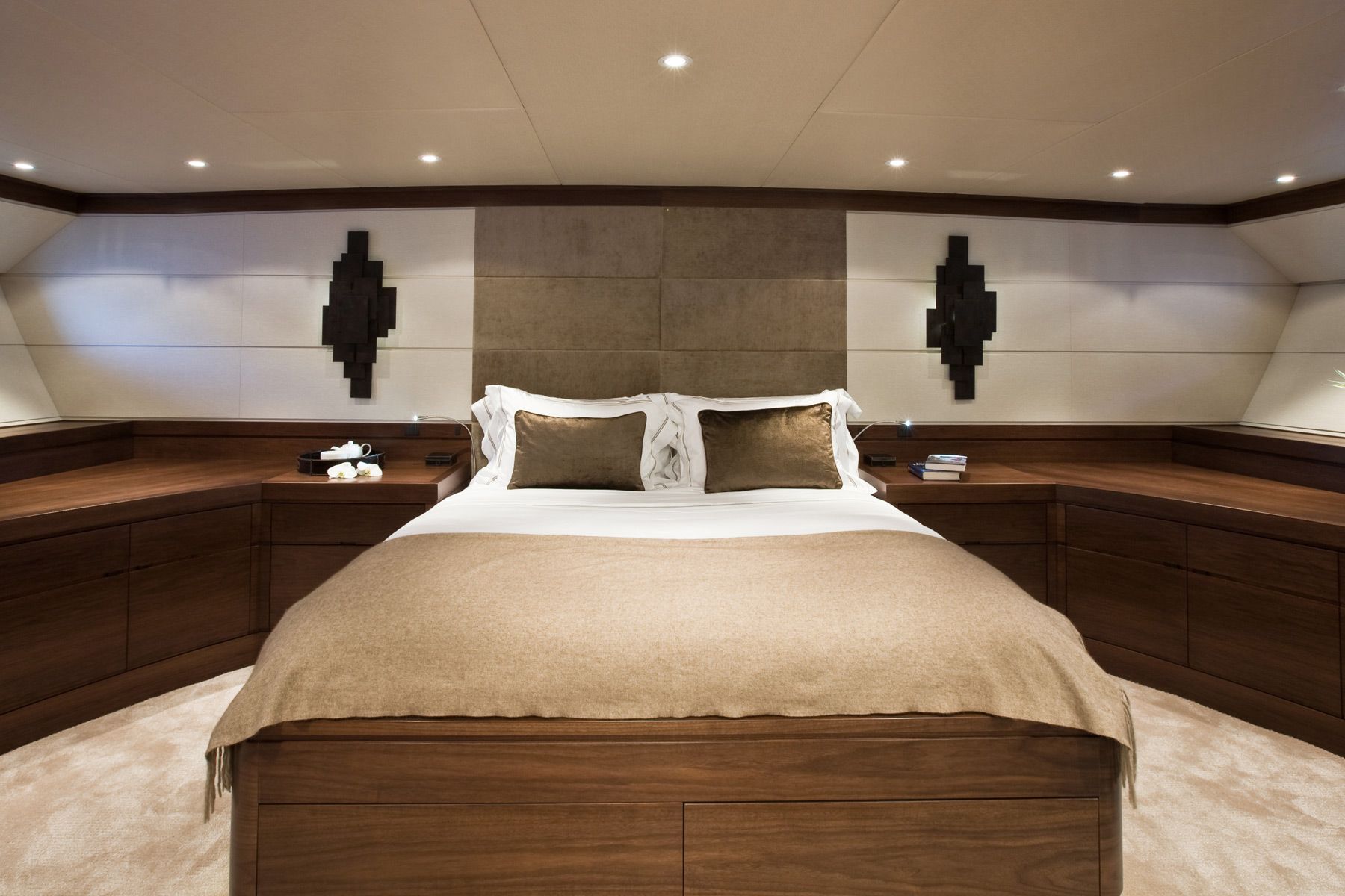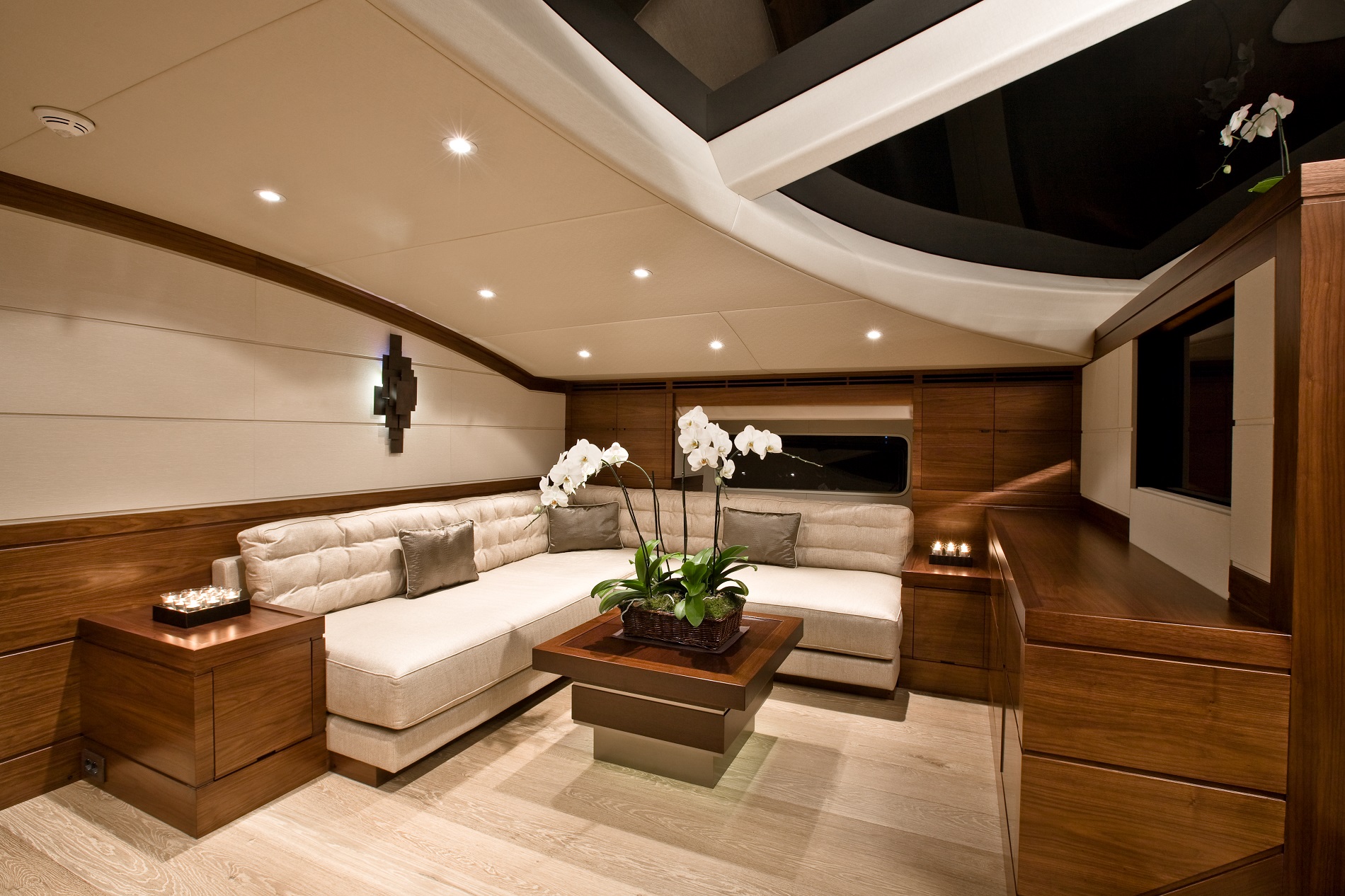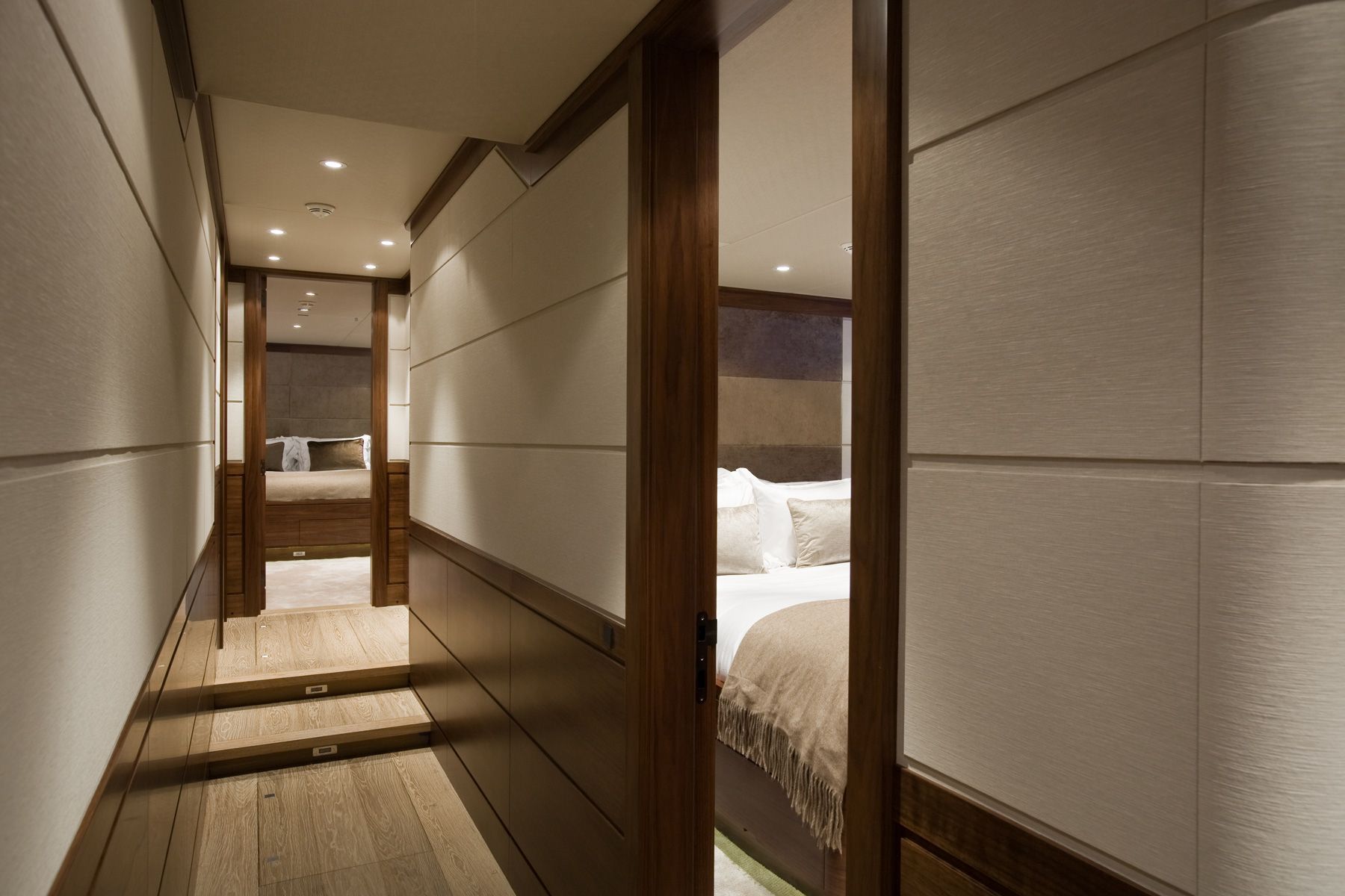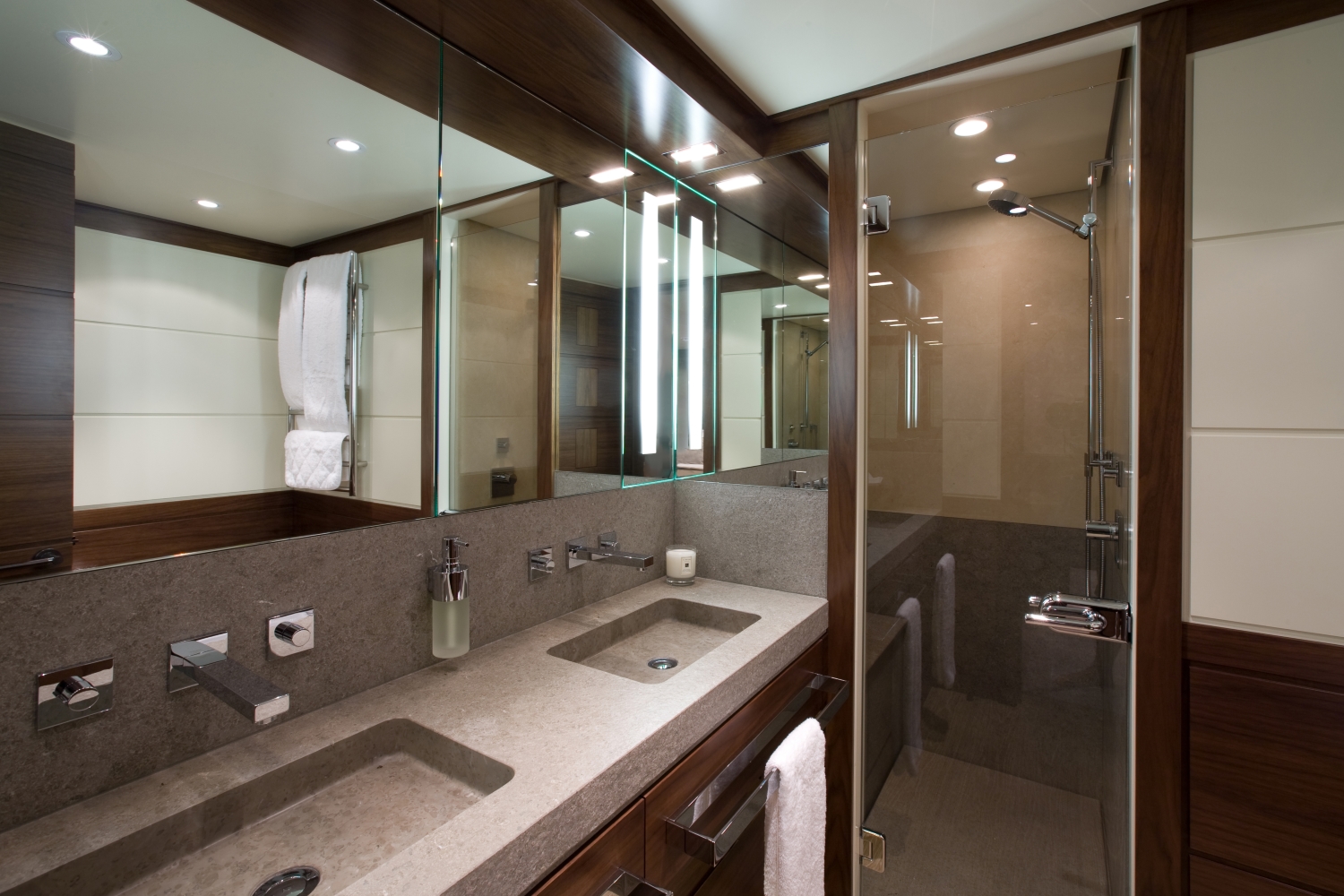 GITANA received two Best Sailing Yacht awards. Through experience and detailed refinements, she has been built for even better sailing performance as well as sleek aesthetics. The yacht boasts carefully crafted negative detail on the attractive walnut cabinetry that is a feature throughout. Other impressive details include custom treatment on imported door latches and light switches. She features a clean, contemporary atmosphere and high functionality throughout the yacht.