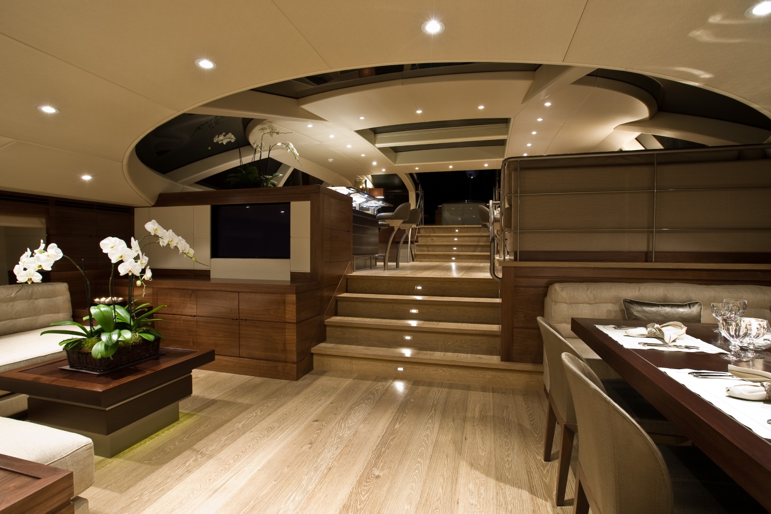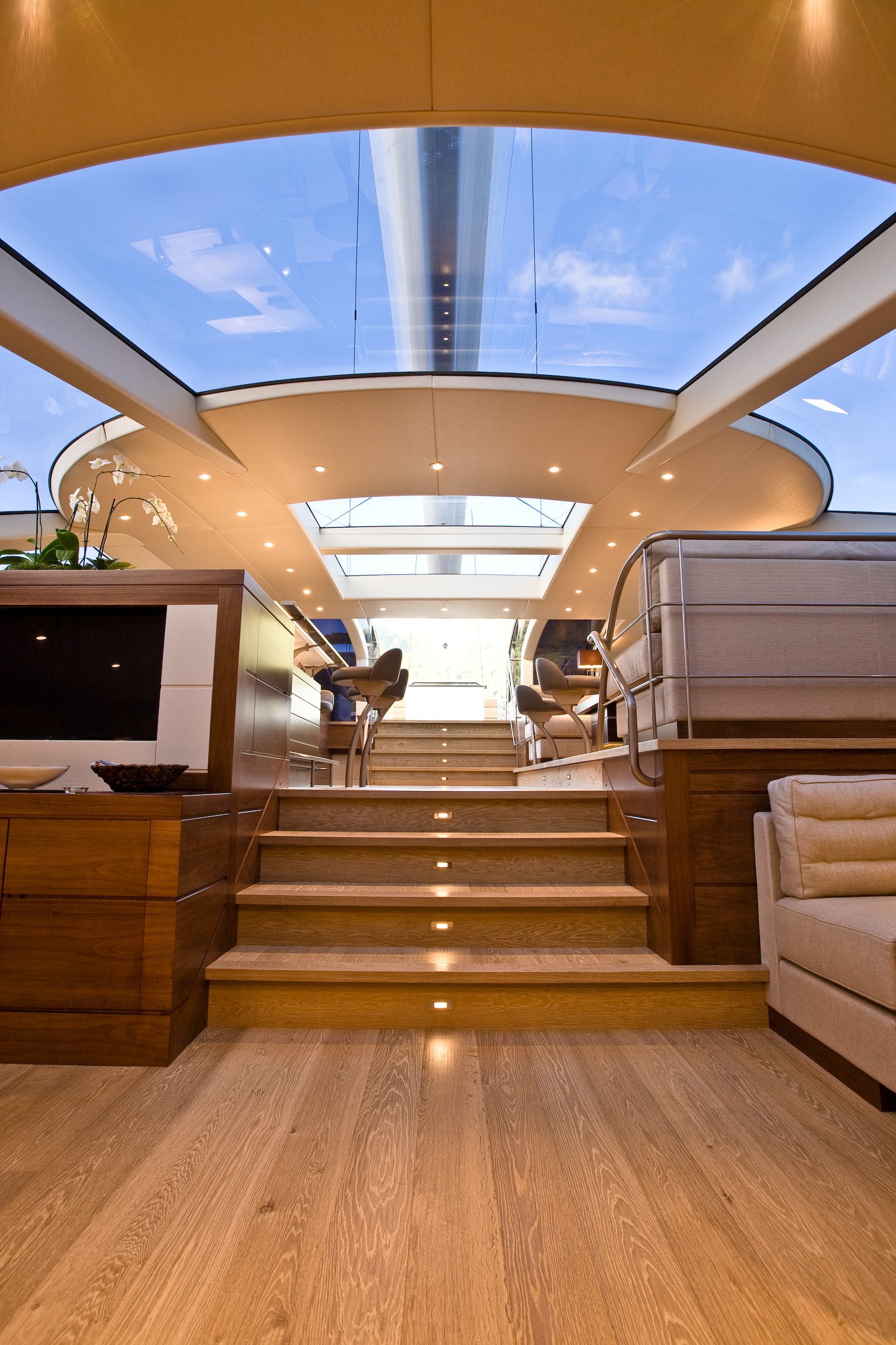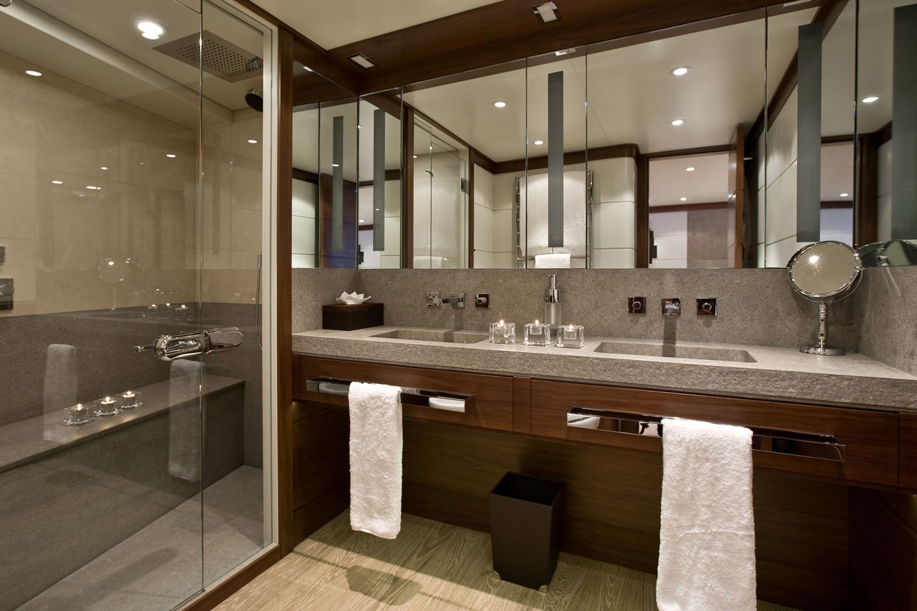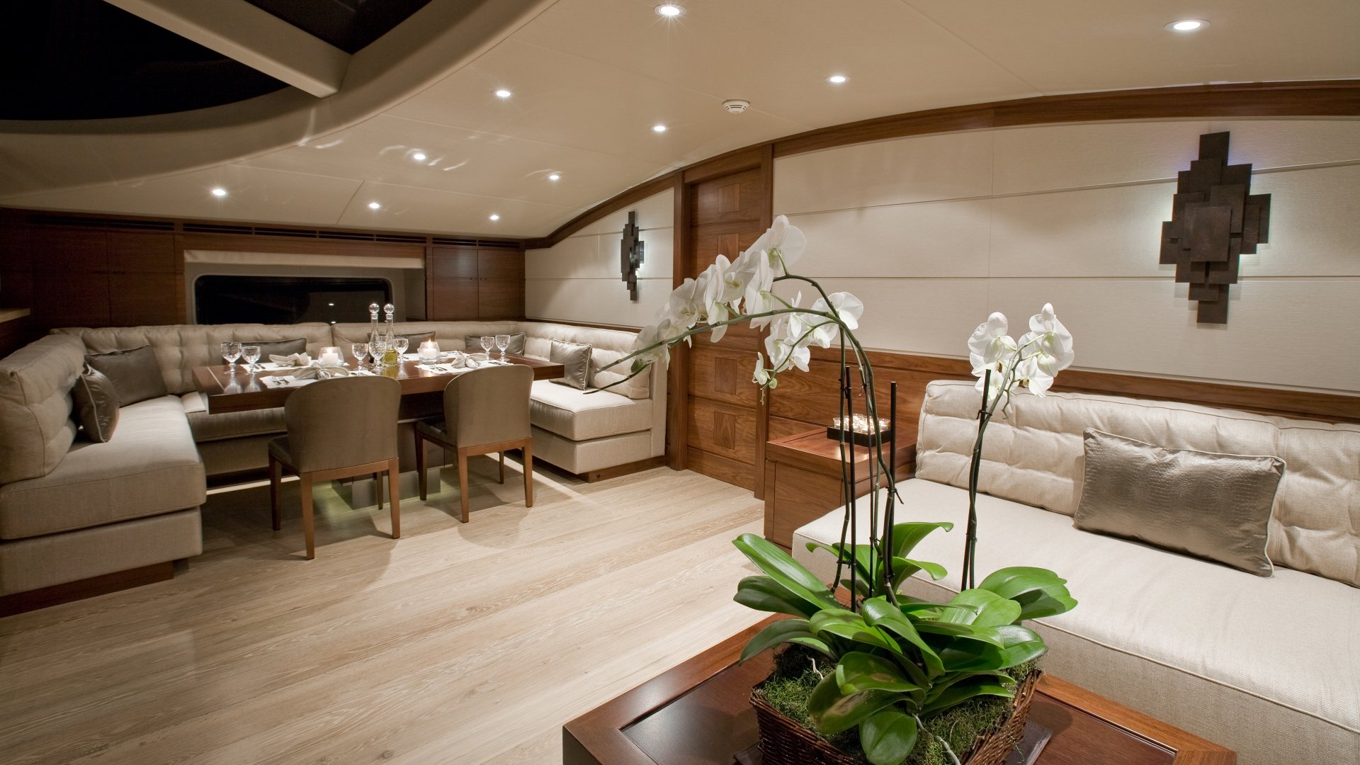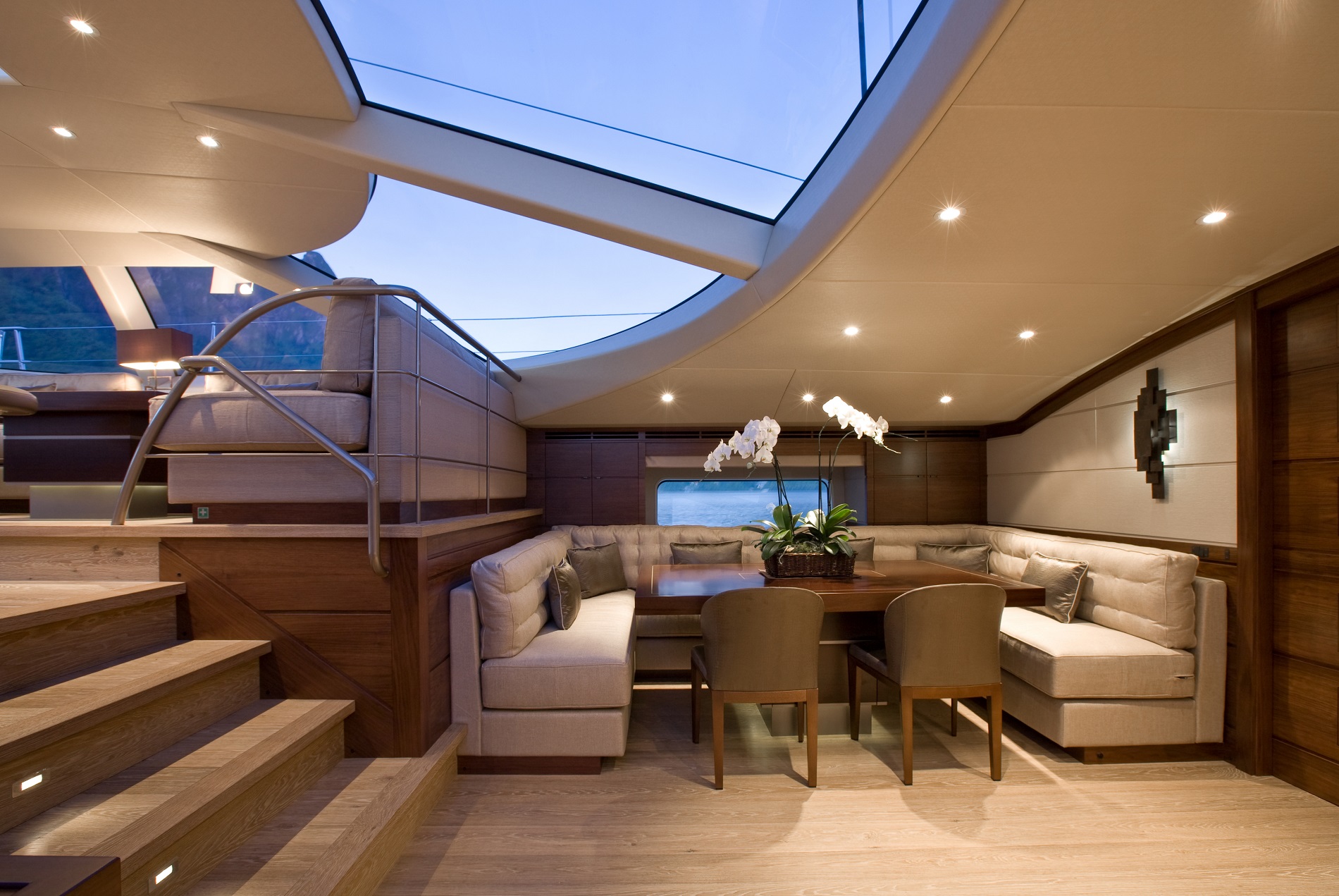 GITANA received two Best Sailing Yacht awards. Through experience and detailed refinements, she has been built for even better sailing performance as well as sleek aesthetics. The yacht boasts carefully crafted negative detail on the attractive walnut cabinetry that is a feature throughout. Other impressive details include custom treatment on imported door latches and light switches. She features a clean, contemporary atmosphere and high functionality throughout the yacht.
