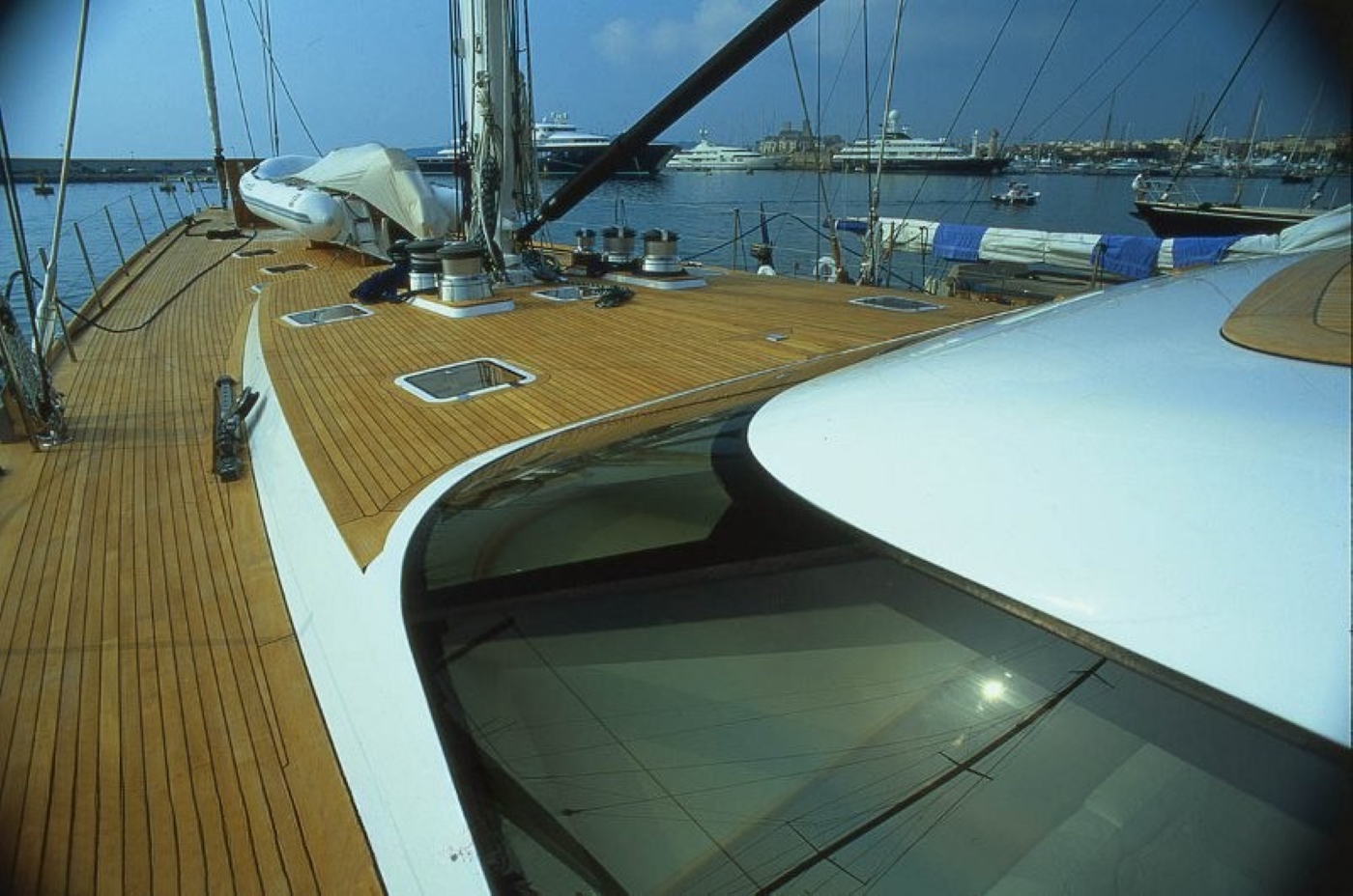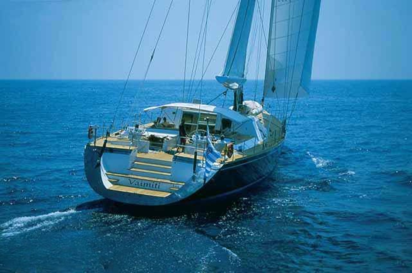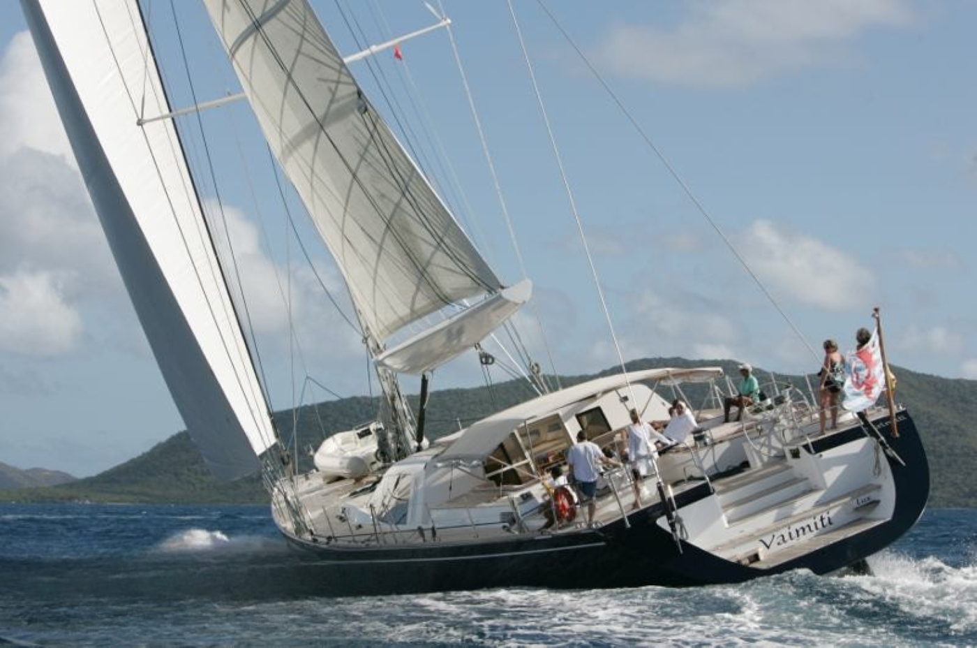 Luxury Sailing Yacht VAIMITI was built by Tréhard Marine in 2003 and designed by naval architect Jacques & Nicolas Fauroux whose group is also responsible for her entire engineering works. Her sophisticated design combines high standards of luxury with maximum sailing performance. At 128.7ft (39,2m), with an Aluminium hull and superstructure, she is easy to handle and all sails can be hydraulically controlled from the helmsman's steering station. Two keels and a ballast tanks system guarantee stability and her shallow draft is ideal for getting close into the best anchorages. VAIMITI has had a full rigging refit by Navtec in 2012, followed by another extensive refit in 2025. This luxury sailing yacht accommodates 8 + 2 guests and is capable of carrying up to 5 crew.