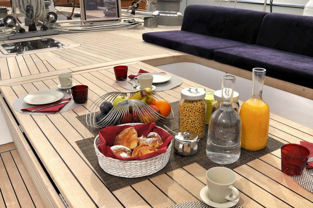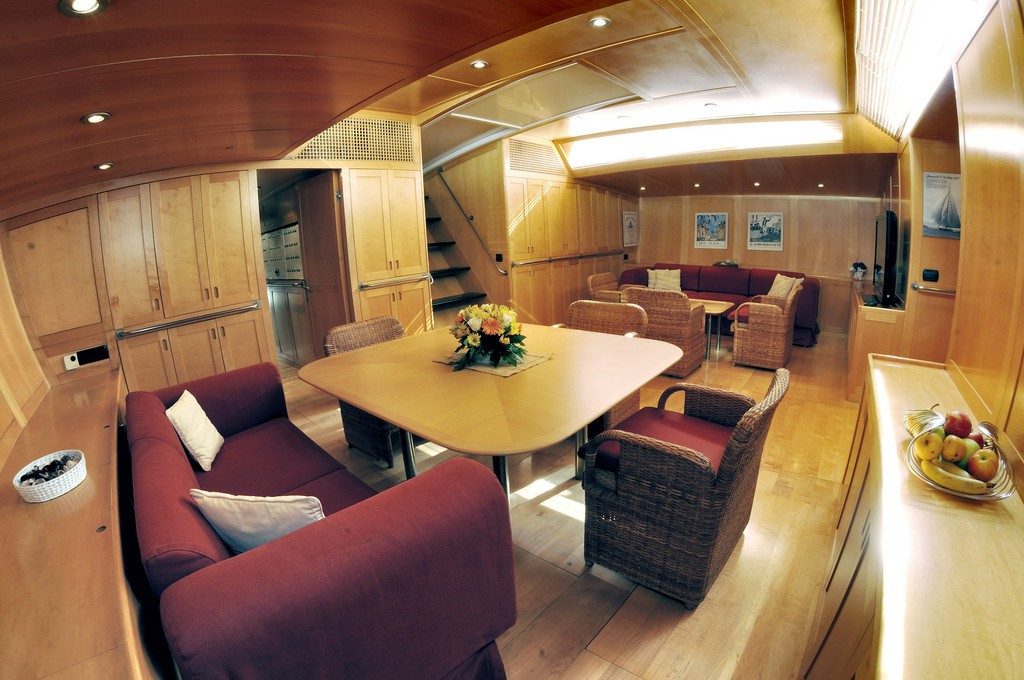 GurianorAtisa Chilled Water System is the type of air con installed in this ship. This sailing yacht has a teak deck.