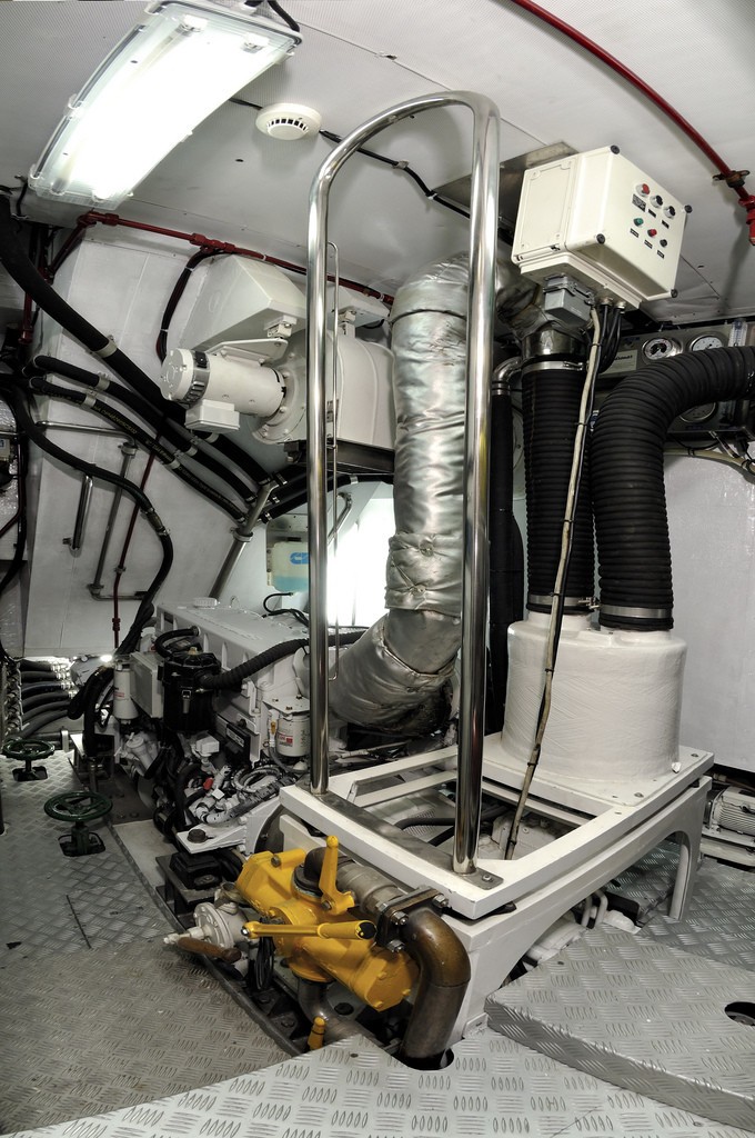 Fitted with one MTU diesel main engines, ADESSO can attain a high speed of 12 knots. ADESSO is propelled by a single screw propeller. She also has an economical range of 850 miles whilst underway at her cruise speed of 11 knots. Her total HP is 550 HP and her total Kilowatts are 405.