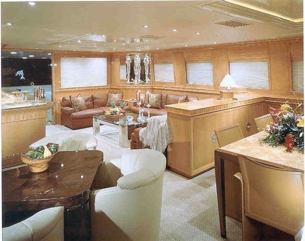 Trident was the naval architect involved in the professional vessel composition for AKIM. Her interior design was completed by Lauren Currell. Trident and Sergio Cutolo and Baglietto is also associated with the yacht wider design collaboration for this yacht. the United States is the country that Trident Shipworks built their new build motor yacht in. After formal launch in 2000 in Tampa Fl she was thereafter delivered on to the proud new owner having completed sea trials. Her hull was crafted from composite. The motor yacht main superstructure is fabricated predominantly from composite. With a beam of 7.19 metres or 23.6 ft AKIM has reasonable internal space. She has a shallow draught of 1.83m (6ft).
