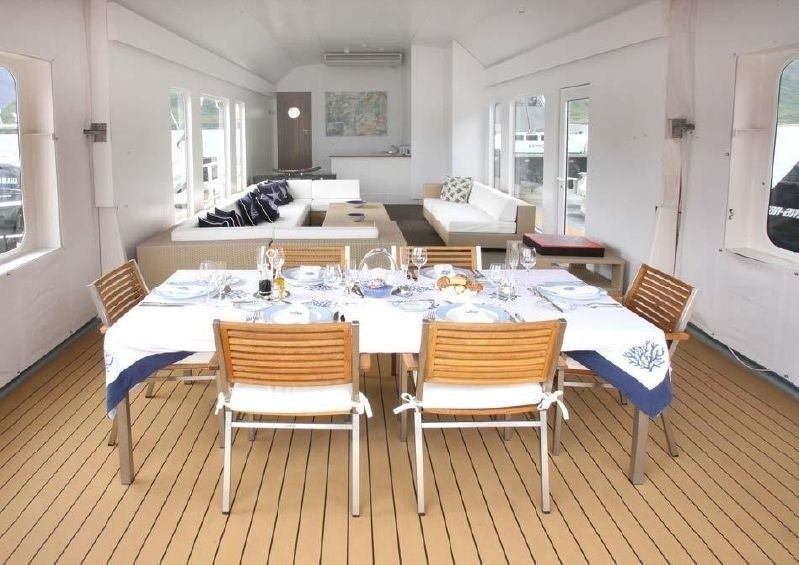 She is driven by three efficient DEUTZ-MWM diesel engine(s) and can drive at a impressive maximum limit speed of 13 knots. The engine of the yacht produces 600 horse power (or 816 kilowatts). Her total HP is 1800 HP and her total Kilowatts are 2448. Connected to her Deutz-Mwm engine(s) are a single screw propeller.