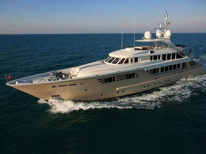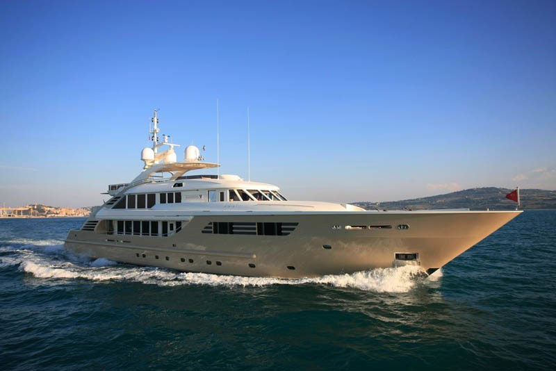 The yacht is propelled by twin responsive MTU diesel engine(s) and can attain a impressive maximum limit continuous speed of around 16.7 knots. The main engine of the yacht generates 3126 horse power (or 2333 kilowatts). Her total HP is 6252 HP and her total Kilowatts are 4666. She is driven by twin screw propellers. This yacht’s express cruising speed is 15.5 knots which provides a range of 2250.